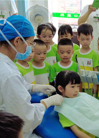 幼兒園小朋友在老師及家長的帶領下有序進行涂氟。據介紹,涂氟是將高濃度的氟化物涂抹于牙齒表面,使之快速氟化,形成保護層,能起到預防蛀牙的效果。隨后,醫護人員還為小朋友及家長普及口腔保護常識,現場講解刷牙的正確方法,并帶領小朋友參觀牙科診室,了解牙科設備,消除小朋友對于牙齒檢查治療的恐懼。