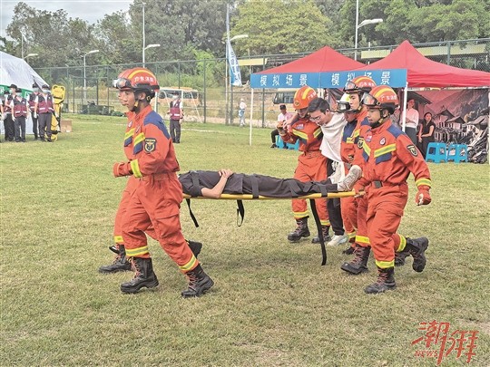 消防救援隊員轉運“傷員”。