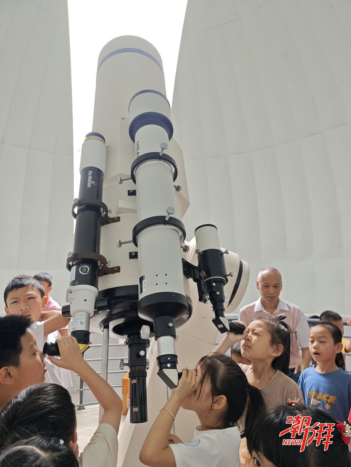 同學們用天文望遠鏡探索浩瀚宇宙。