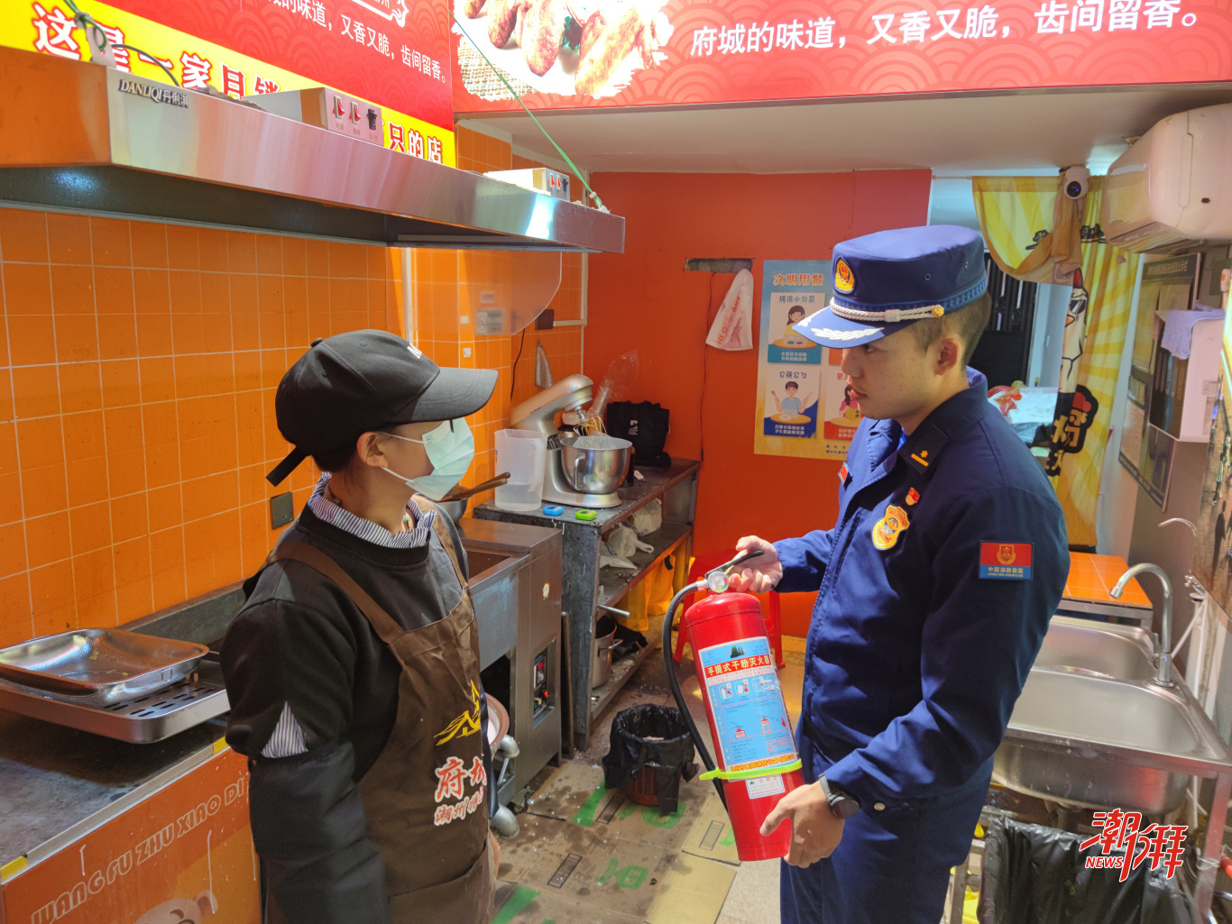 在古城消防驛站,謝曉濤核對好巡查記錄后,帶齊裝備上街執勤。他告訴記者,除了日常巡邏和檢查之外,他們還會為游客和附近的居民提供相應的便民服務。