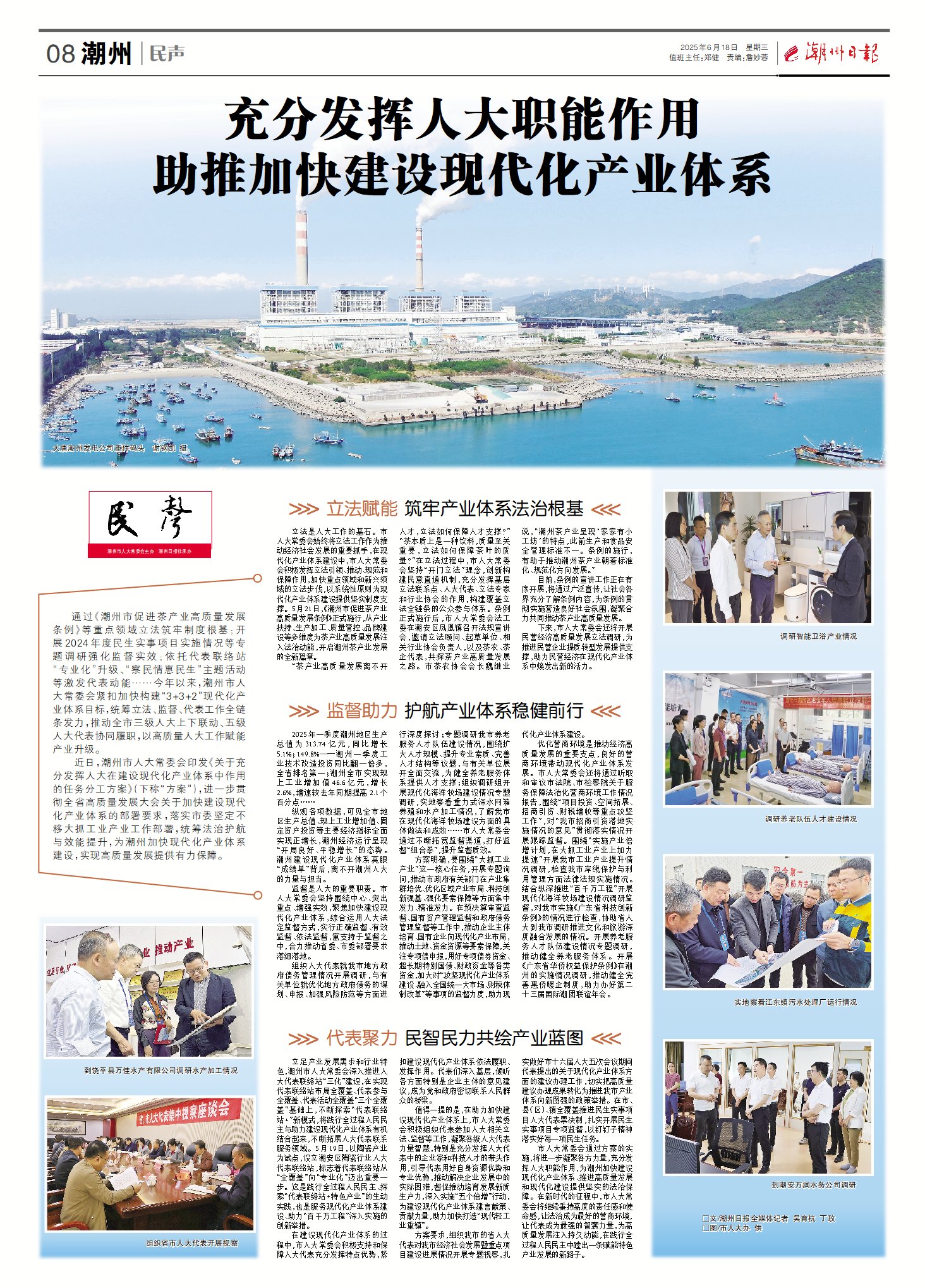 縱觀各項數(shù)據(jù),可見全市地區(qū)生產(chǎn)總值、規(guī)上工業(yè)增加值、固定資產(chǎn)投資等主要經(jīng)濟指標全面實現(xiàn)正增長,潮州經(jīng)濟運行呈現(xiàn)“開局良好、平穩(wěn)增長”的態(tài)勢。潮州建設現(xiàn)代化產(chǎn)業(yè)體系亮眼“成績單”背后,離不開潮州人大的力量與擔當。