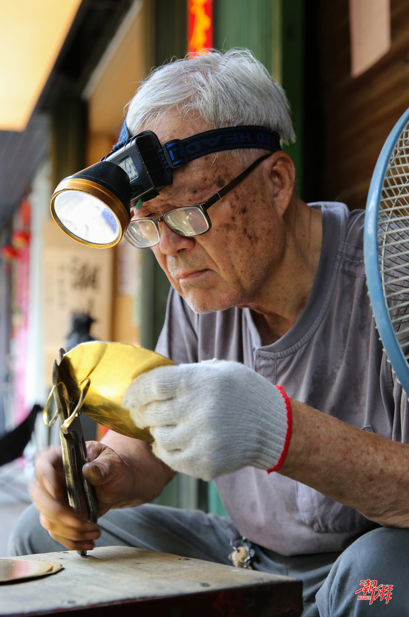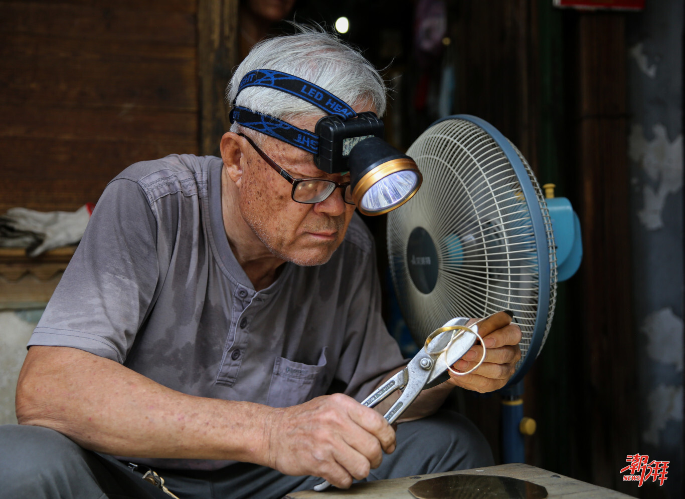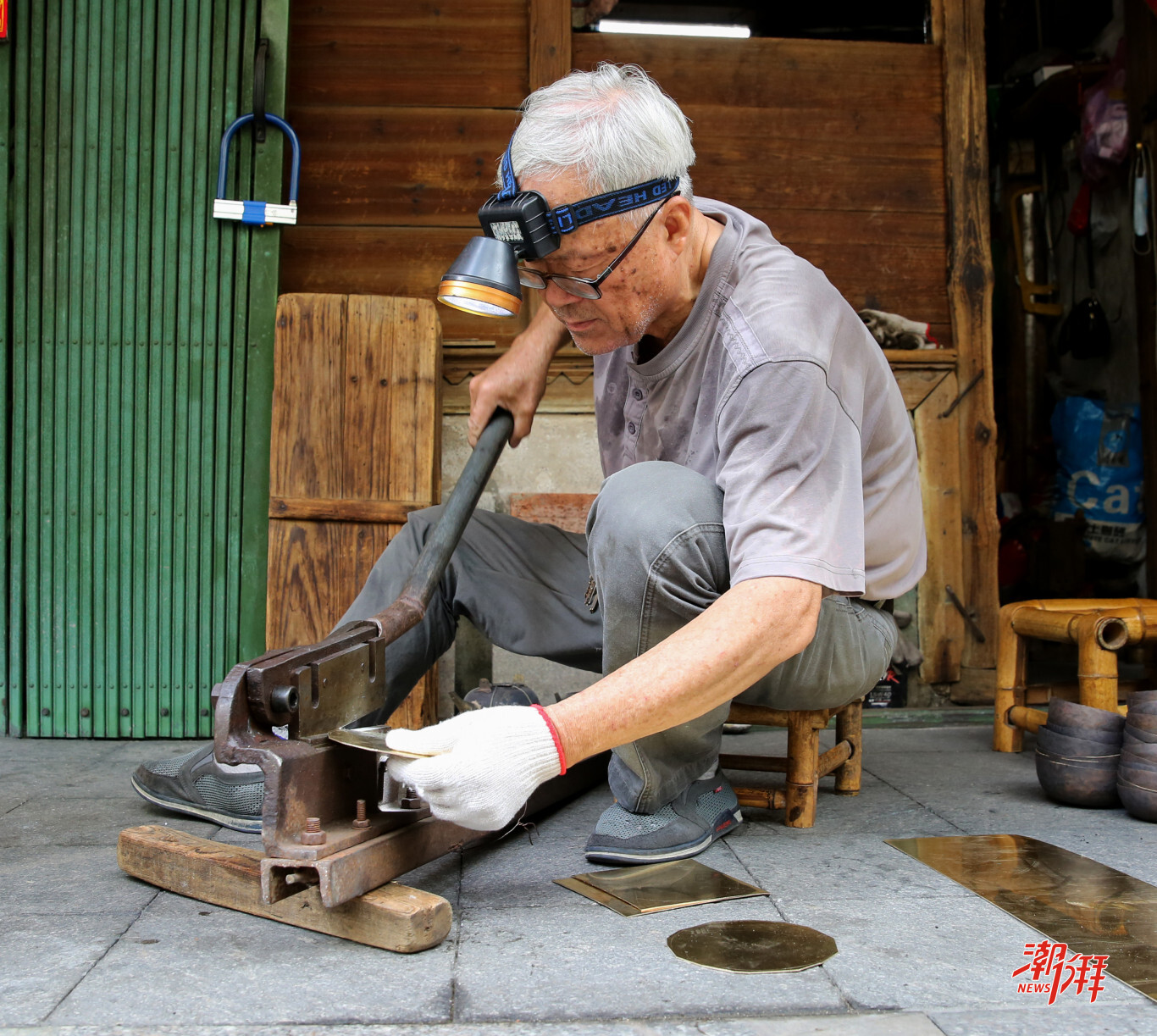 當?shù)谝豢|清脆的敲擊聲,從9平方米的店鋪響起,義安路似乎才真正蘇醒了——然而這聲音,卻是潮州古城里目前僅有的打銅聲。