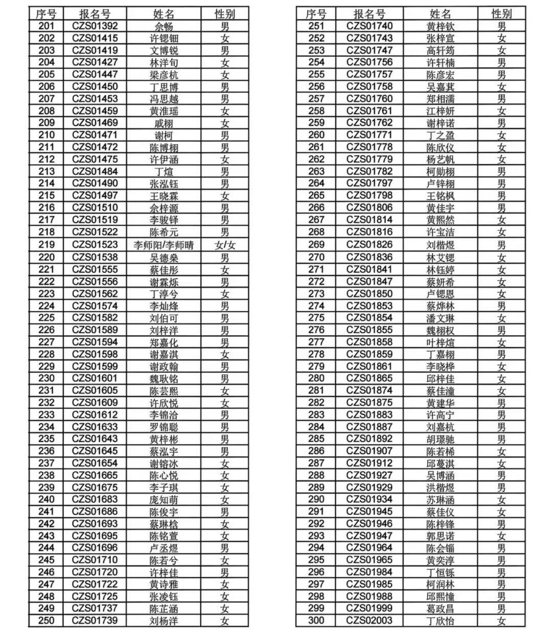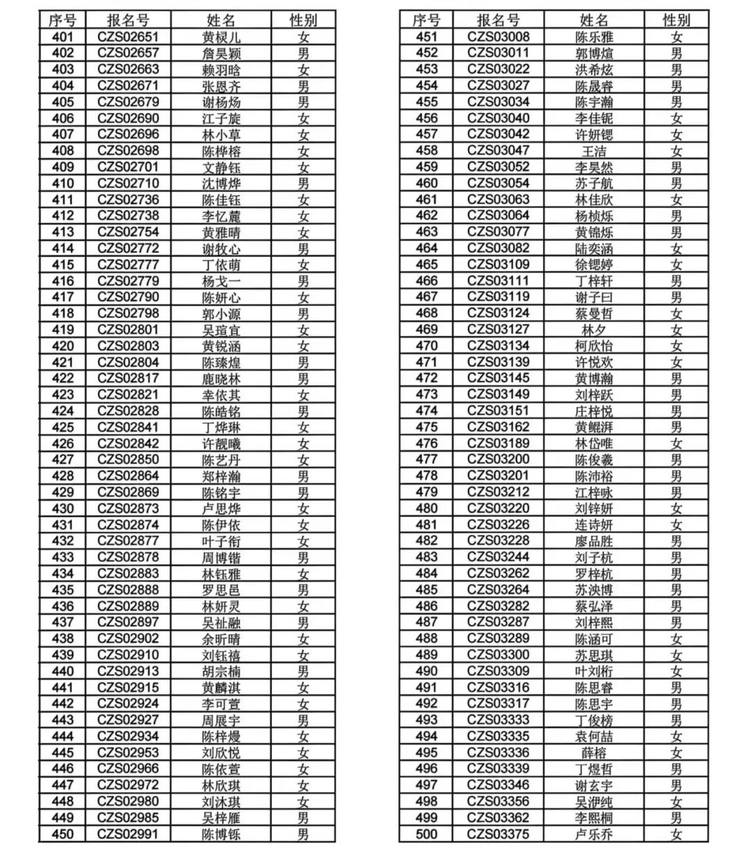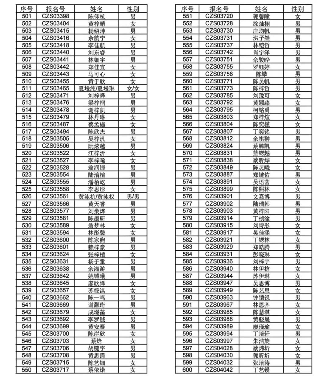 根據《潮州市金山實驗學校2025—2026學年度初一級招生簡章》,我校于7月14日至16日現場對搖號招生中第一志愿報讀我校的學生進行資格初審。本次搖號招生中第一志愿報讀我校的學生共736人次,總共746人(含雙胞胎10對)。共有701人次,總共711人(含雙胞胎10對)通過審核,現予以公示,具體名單附后。