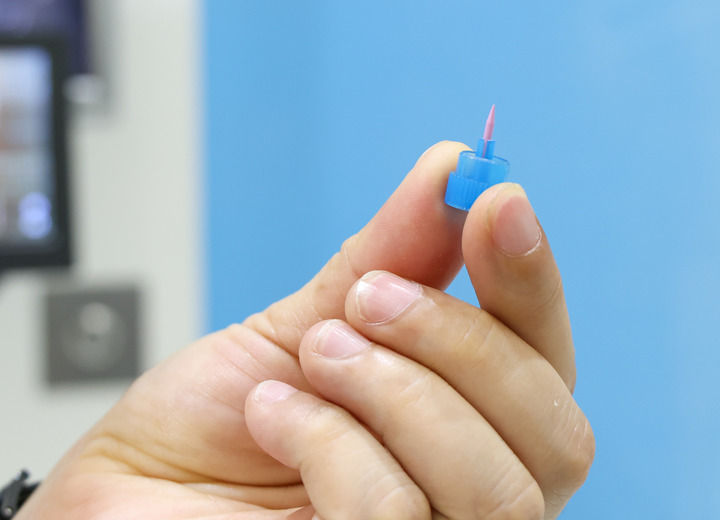 在三環(huán)集團(tuán)潮州廠區(qū),工作人員展示IC封裝陶瓷劈刀(5月28日攝)。新華社記者 毛思倩 攝