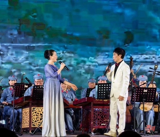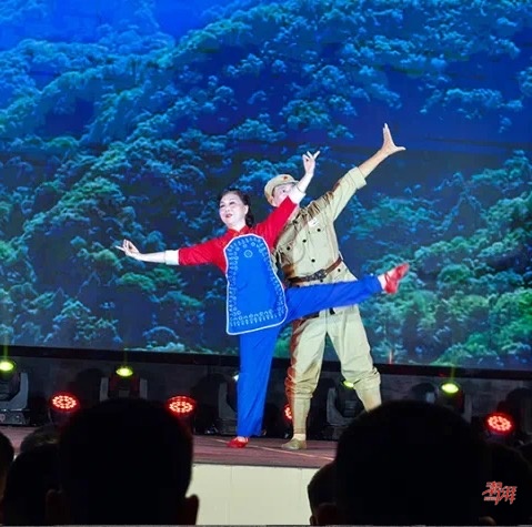 當晚,活動在駐潮某部官兵表演的《向建軍一百年奮斗目標前進》開場舞中拉開序幕,動感的舞姿瞬間點燃全場熱情。隨后,《萬泉河水清又清》的旋律響起,身著傳統服飾的舞者以柔美舞姿,生動詮釋了革命歲月里軍民相依的魚水深情;女聲二重唱《雙雙草鞋送紅軍》用真摯歌聲再現了人民支援軍隊的感人場景;大合唱《歌唱祖國》更是將整場演出推向最高潮……現場節目精彩紛呈,歌舞飛揚,臺下掌聲雷動,氣氛熱烈。