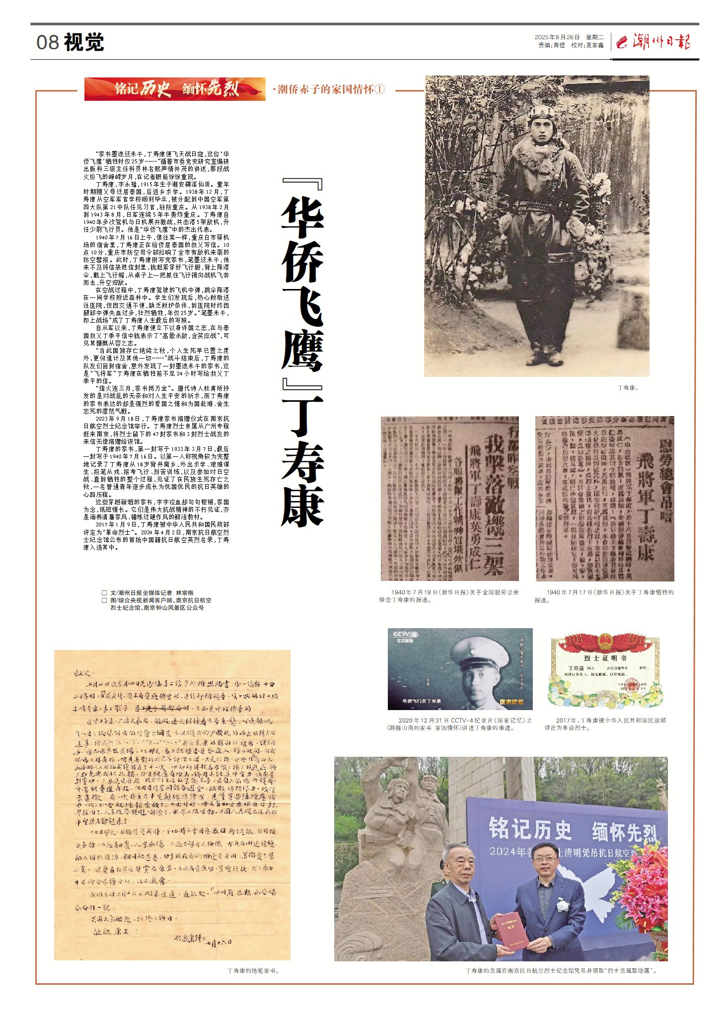 “家書墨跡還未干,丁壽康便飛天戰日寇,這位‘華僑飛鷹’犧牲時僅25歲……”循著市委黨史研究室編研出版科三級主任科員林名熙聲情并茂的講述,那段戰火紛飛的崢嶸歲月,在記者眼前徐徐重現。