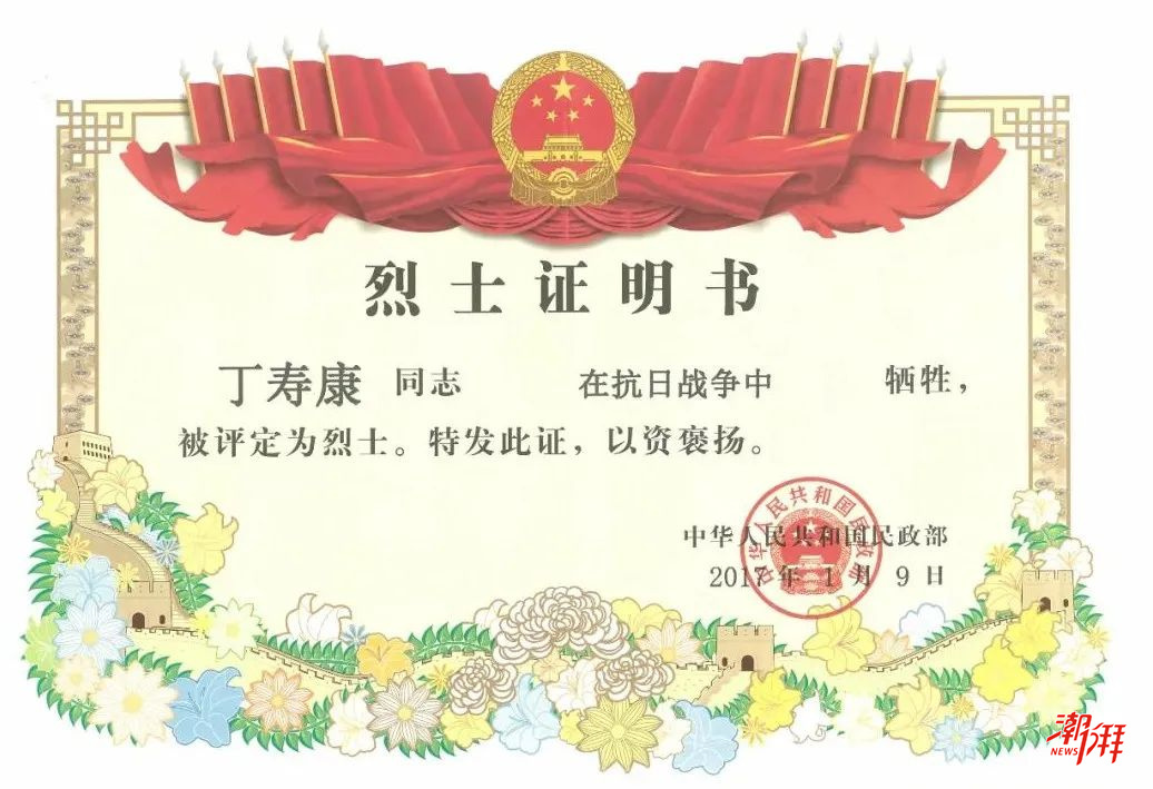 2017年,丁壽康被中華人民共和國民政部評定為革命烈士。
