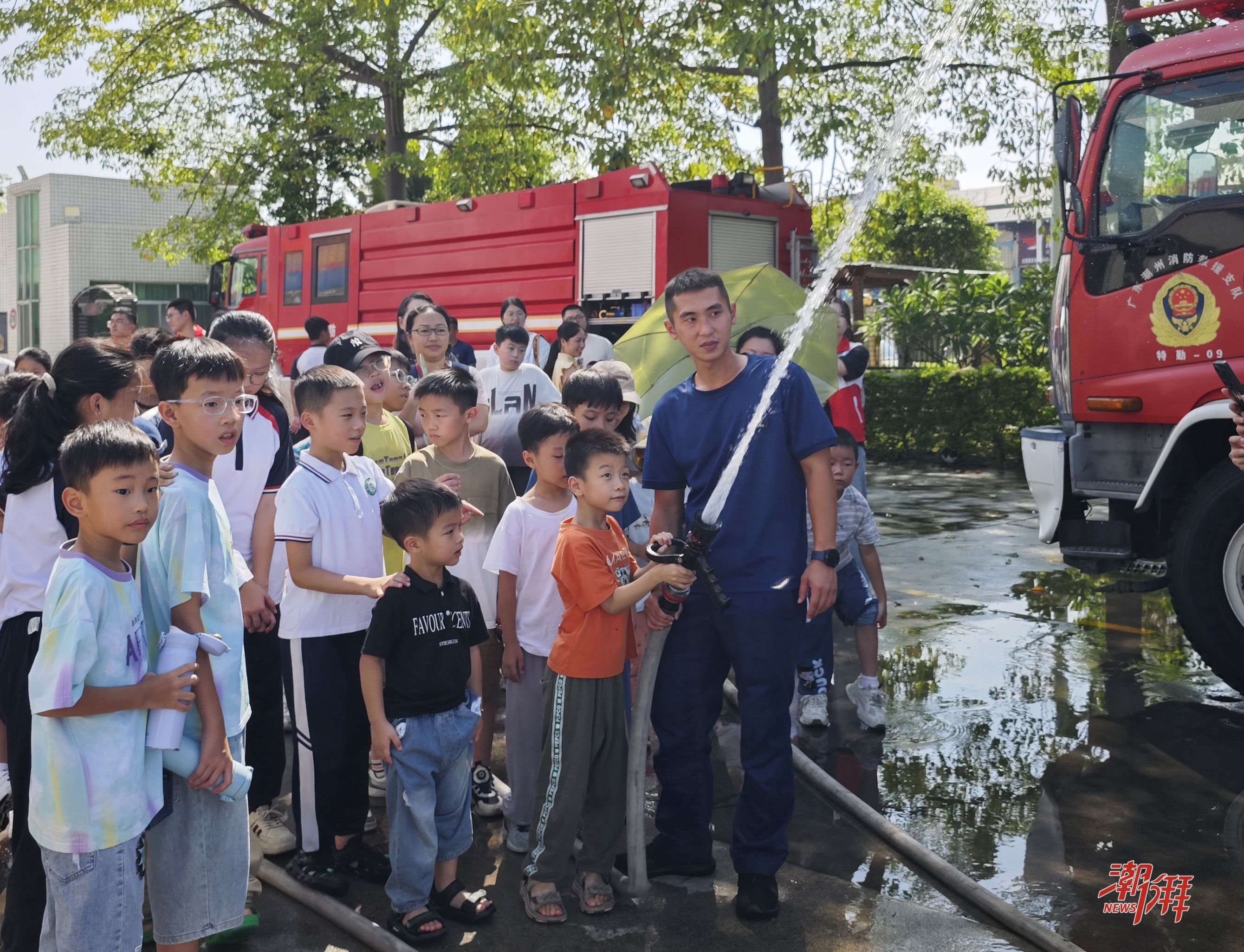 親身體驗消防員日常的湘橋區廈寺小學學生吳芃銘顯得很興奮。他學習了水槍噴射的操作,目睹消防員們緊張有序的訓練,深刻地感受消防員肩上的責任很重!