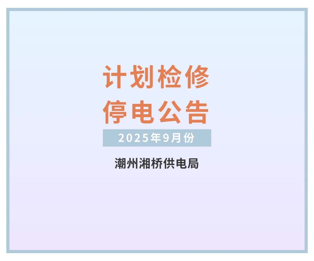 潮州湘橋供電局2025年9月份計劃檢修停電公告