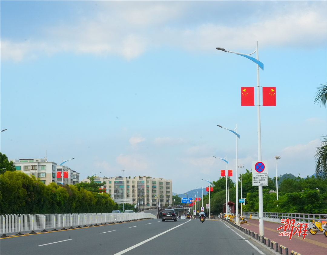 為紀(jì)念中國人民抗日戰(zhàn)爭暨世界反法西斯戰(zhàn)爭勝利80周年,潮州市區(qū)精心進(jìn)行環(huán)境景觀布置,300多面國旗在各主干道兩側(cè)整齊排列。記者走訪時(shí)看到,潮州大道的路燈兩側(cè)整齊懸掛著鮮艷的五星紅旗,南堤路、天水路的路燈上也掛起嶄新的國旗,成為一道亮麗的風(fēng)景線。市區(qū)各天橋上還懸掛著醒目的宣傳標(biāo)語,進(jìn)一步營造莊重?zé)崃业募o(jì)念氛圍。