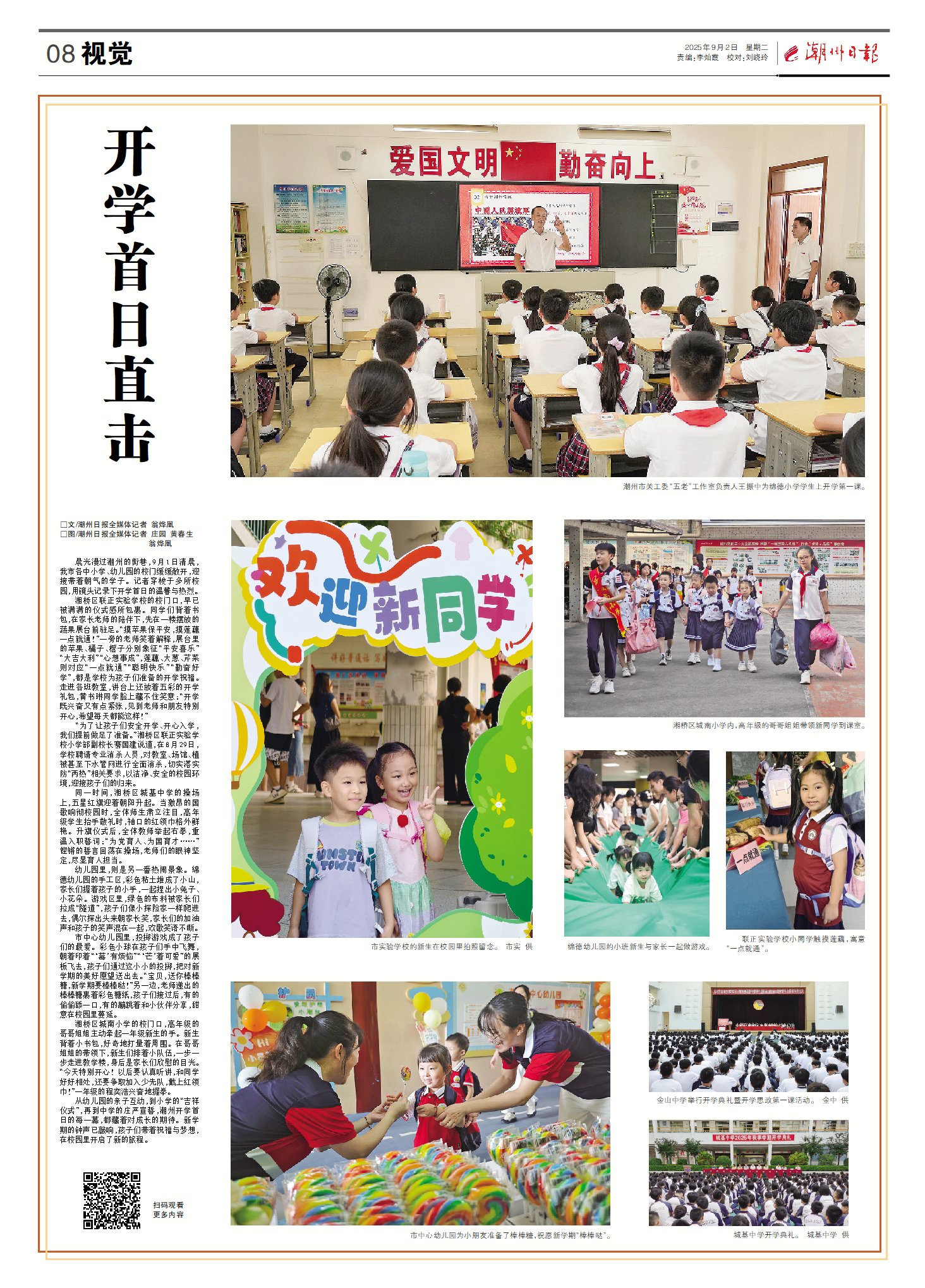 晨光漫過潮州的街巷,9月1日清晨,我市各中小學、幼兒園的校門緩緩敞開,迎接帶著朝氣的學子。記者穿梭于多所校園,用鏡頭記錄下開學首日的溫馨與熱烈。