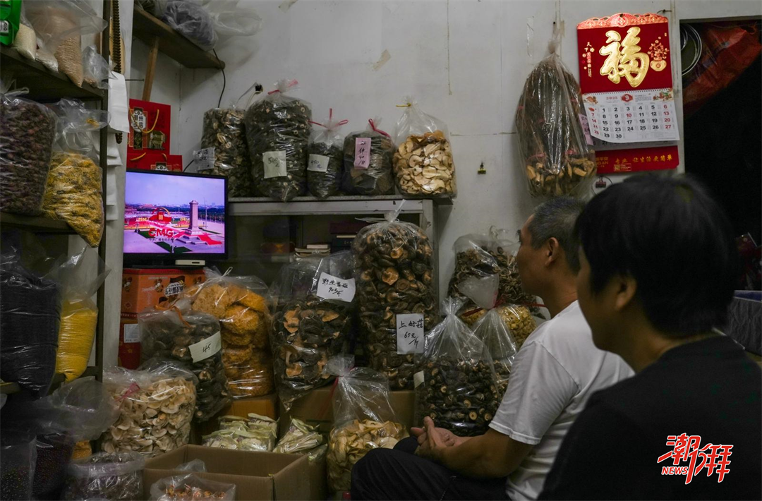 市區中山路一店主在觀看閱兵式直播。潮州日報全媒體記者 黃春生 攝
