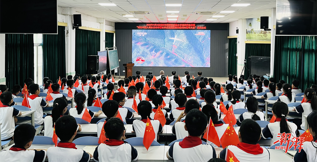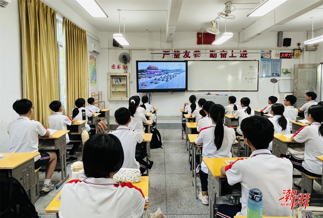 湘橋區城南小學師生觀看九三閱兵。潮州日報全媒體記者陳瑩 攝