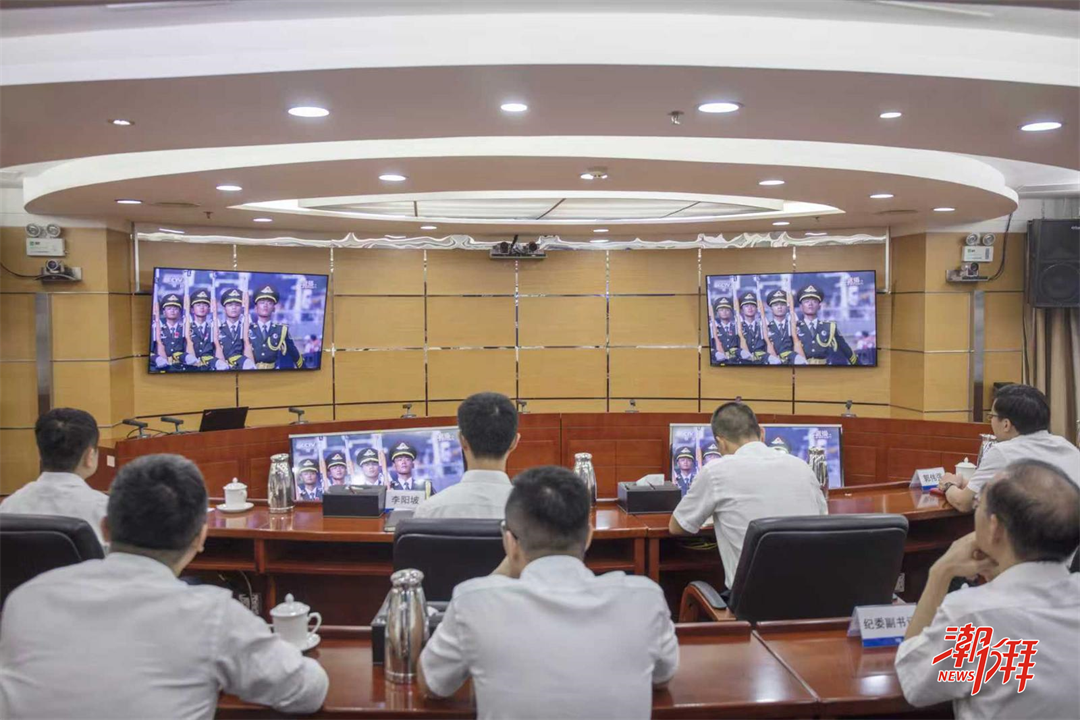 潮州供電局組織員工集中收看閱兵式直播。陳仕爍 攝