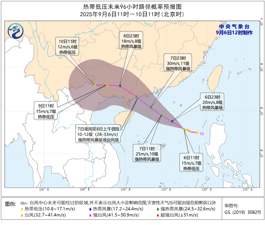預計,熱帶低壓將以15到20公里的時速向西北方向移動, 強度逐漸加強,將于6日下午加強為今年第16號臺風(熱帶風暴級),之后快速向西北方向移動,趨向粵西沿海,強度繼續加強,最強可能加強為11級(強熱帶風暴),最大可能于8日白天在陽江到茂名一帶登陸。