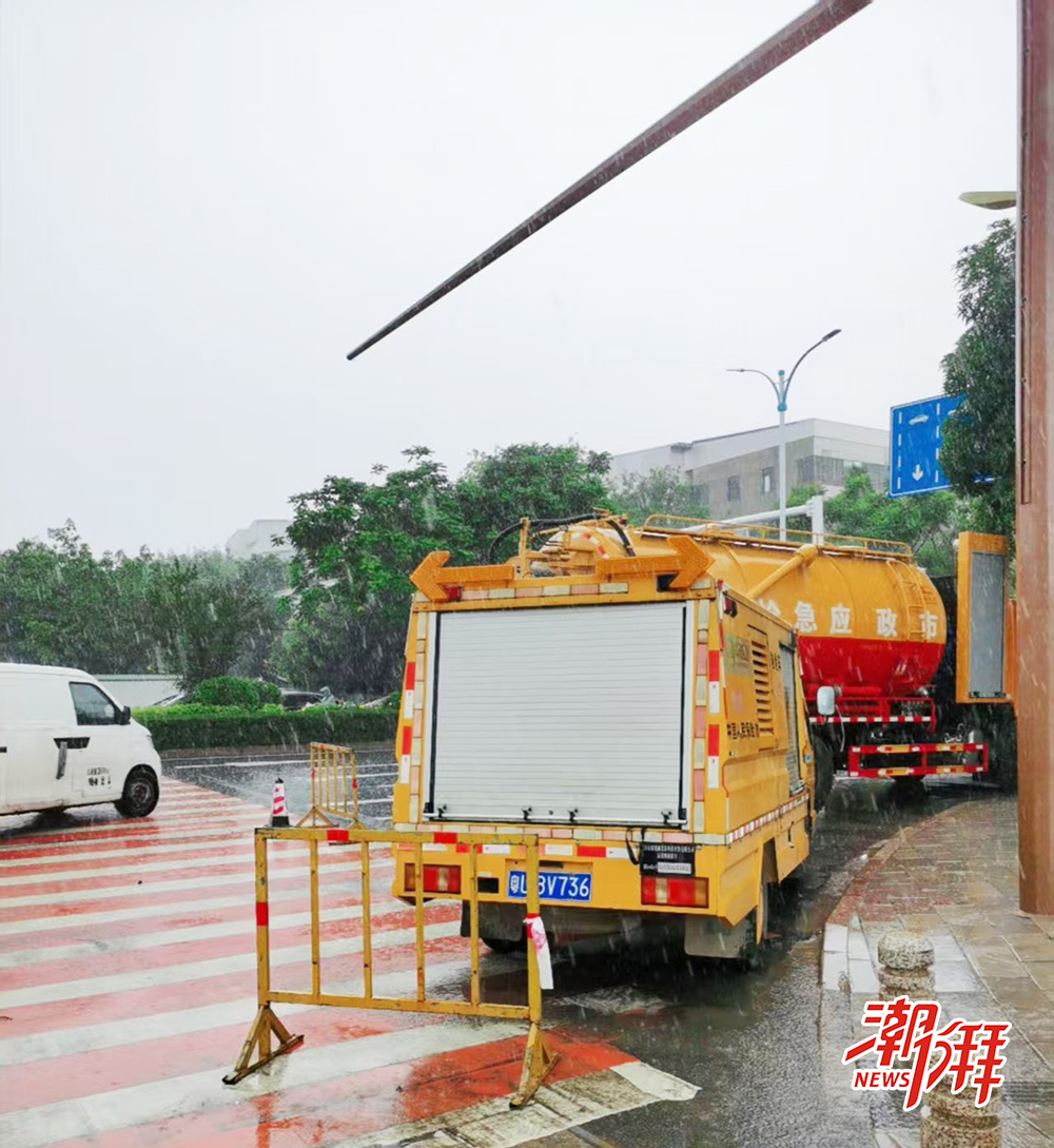 位于潮州大道與銀槐西路交叉口的應(yīng)急保障車輛。