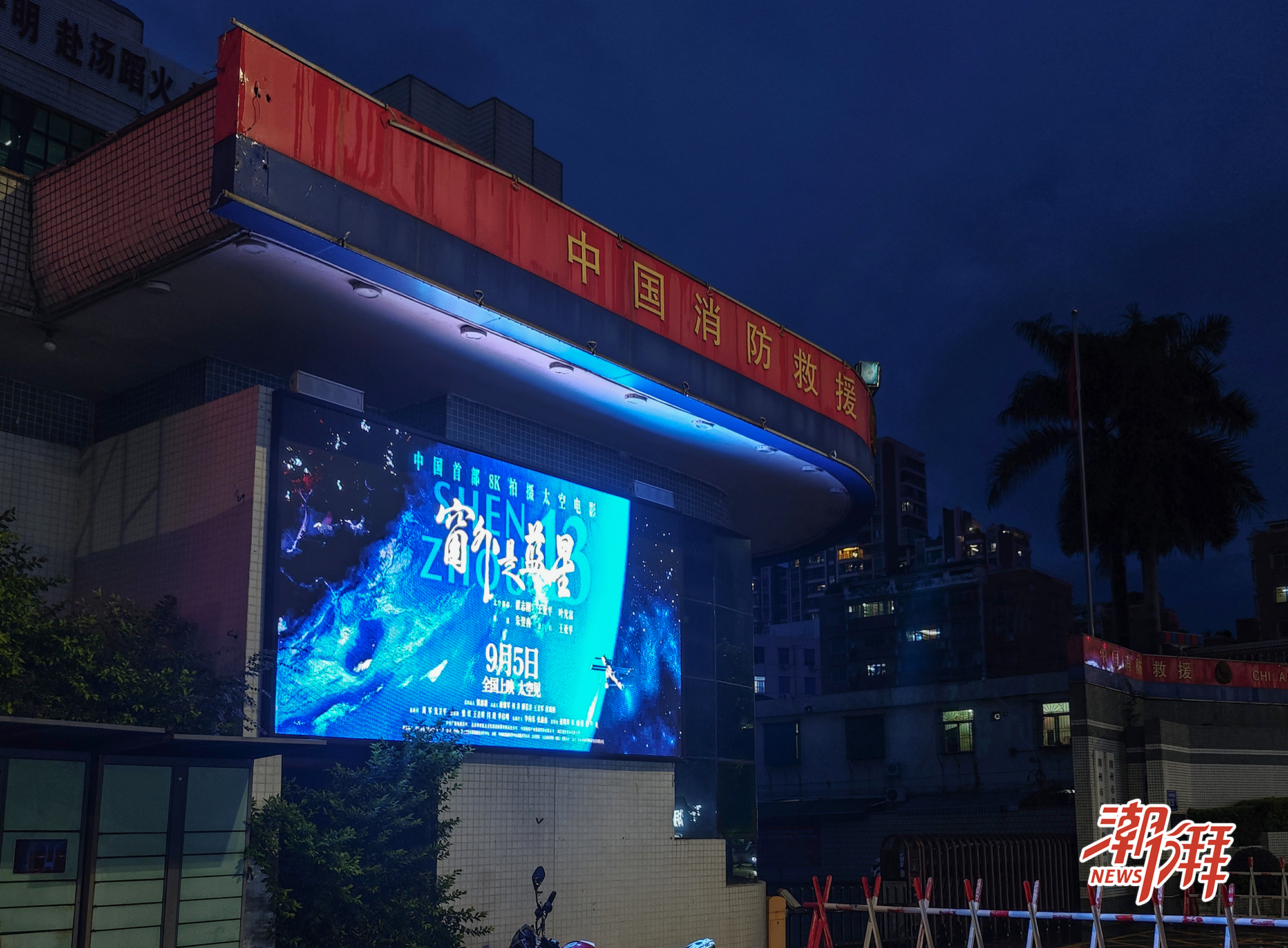 市消防救援支隊門口電子屏播放電影《窗外是藍星》的宣傳畫。(潮州日報全媒體記者 莊園 攝)