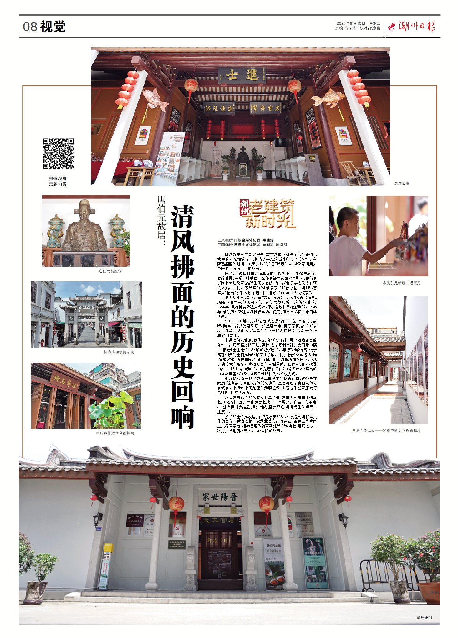 如今的唐伯元故居,不僅是歷史的見證,更是潮州優秀文化的宣傳與教育基地。它承載著市政協詩社、市關工委愛國主義教育基地、湘橋區廉政教育基地等多種功能,繼續以另一種方式傳播廉潔奉公、一心為民的故事。