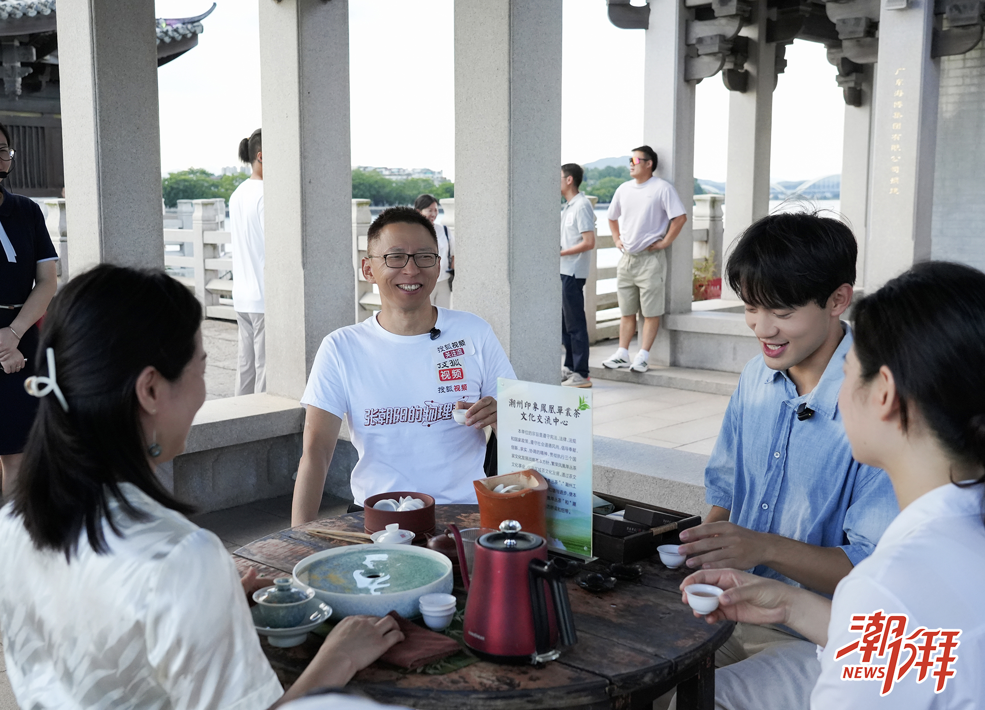 在廣濟橋,張朝陽被幾位潮州非遺代表性傳承人的精湛技藝深深折服。潮州手拉壺制作技藝代表性傳承人林潮明指尖靈動,賦予泥土生命;潮州剪紙非遺代表性傳承人黃朝陽以紙為媒、剪刀為筆,作品栩栩如生;潮州工夫茶藝市級代表性傳承人王翠瑩行云流水般的泡茶動作,盡顯潮州工夫茶文化精髓;潮州木雕市級非遺代表性傳承人盧進文經過精心雕琢,將木材化為精美的藝術品……張朝陽不時與傳承人交流互動,對他們的匠心精神贊嘆不已。