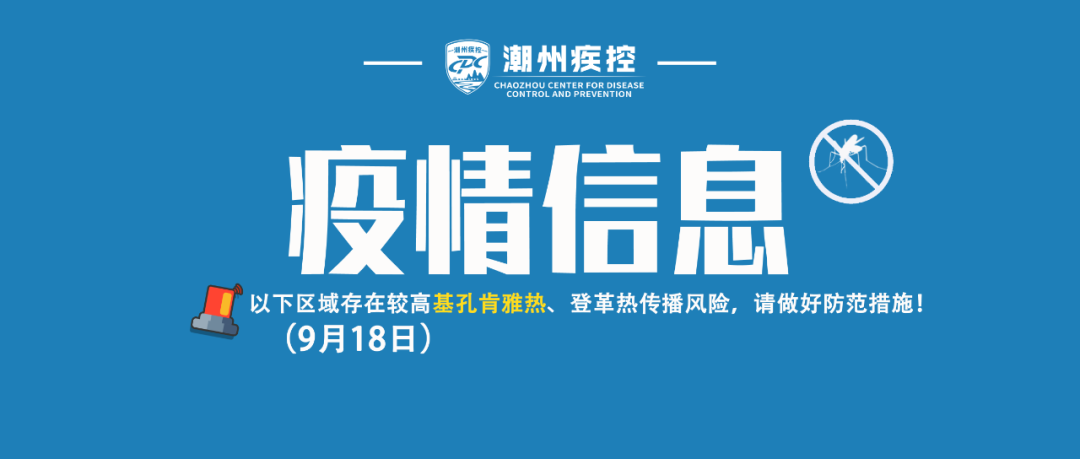 潮州疾控提醒:以下區域存在較高基孔肯雅熱、登革熱傳播風險,請做好防范措施!(9月18日)