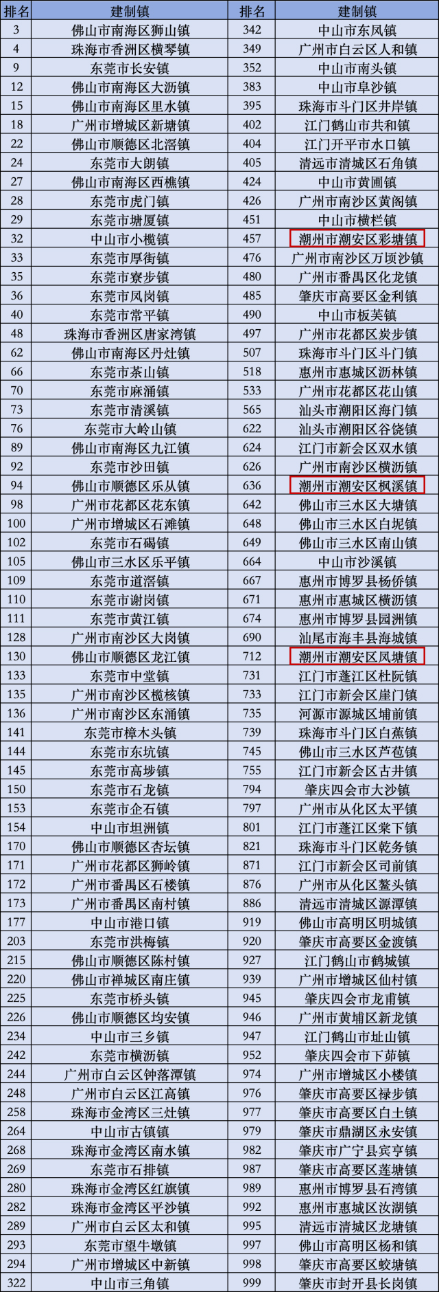 其中,潮州3個鎮上榜,包括潮安區彩塘鎮、楓溪鎮、鳳塘鎮。
