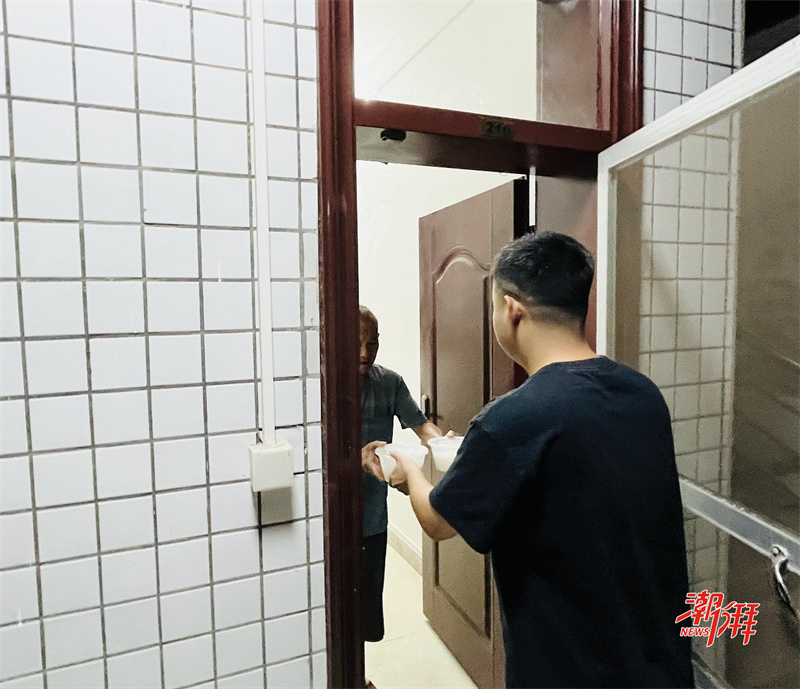 臨時安置點內,工作人員為安置群眾送上宵夜。(潮州日報全媒體記者 陳瑩 攝)