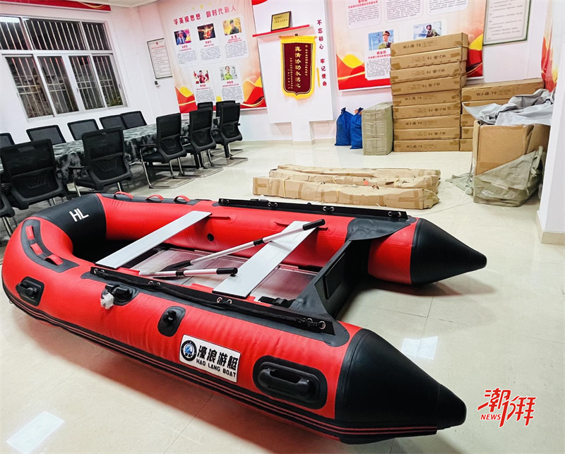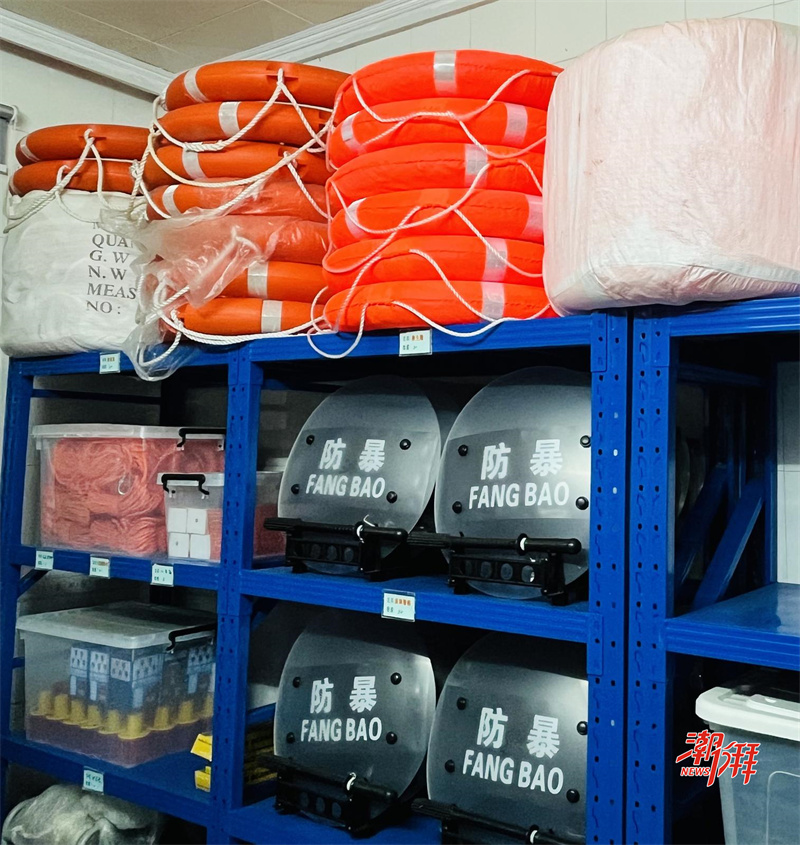 臨時安置點內,救生圈、救生衣等應急裝備儲備充足。(潮州日報全媒體記者 陳瑩 攝)