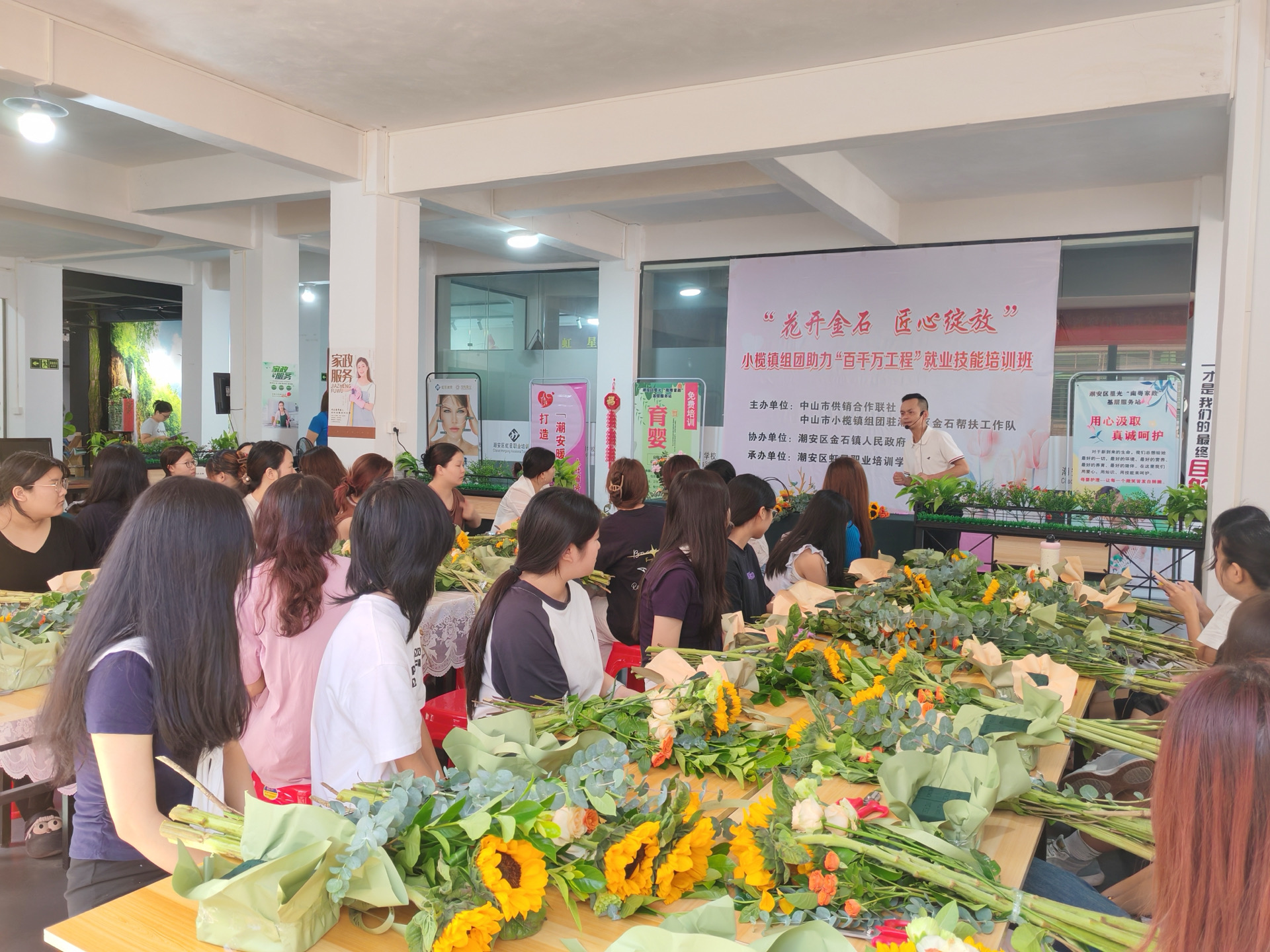 近日,中山市供銷合作聯社聯合小欖鎮組團駐潮安區金石鎮幫扶工作隊在金石鎮成功舉辦“花開金石 匠心綻放”插花藝術就業技能培訓班,提升原建檔立卡脫貧勞動力、防返貧監測對象及外省在潮務工困難勞動力等重點群體的就業能力,吸引了56名學員積極參與。