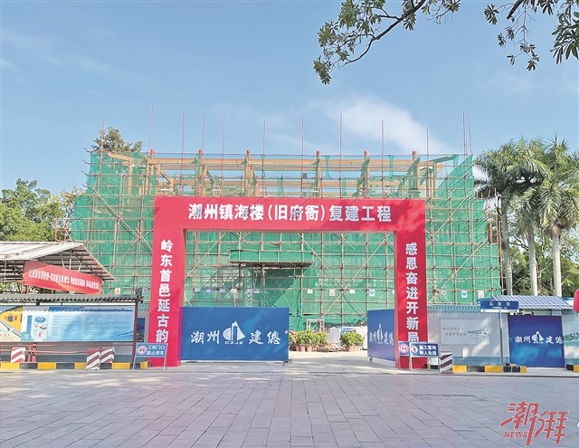 2021年5月,潮州鎮(zhèn)海樓(舊府衙)復(fù)建工程正式動工建設(shè),在原址依據(jù)原貌復(fù)建鎮(zhèn)海樓。該工程總面積為1090.39平方米,總投資3780萬元,于2022年年底復(fù)建完工。鎮(zhèn)海樓復(fù)建工程是潮州古城提升行動計劃的重點項目之一,它以點帶面盤活古城文旅資源,推動古城展現(xiàn)新魅力。