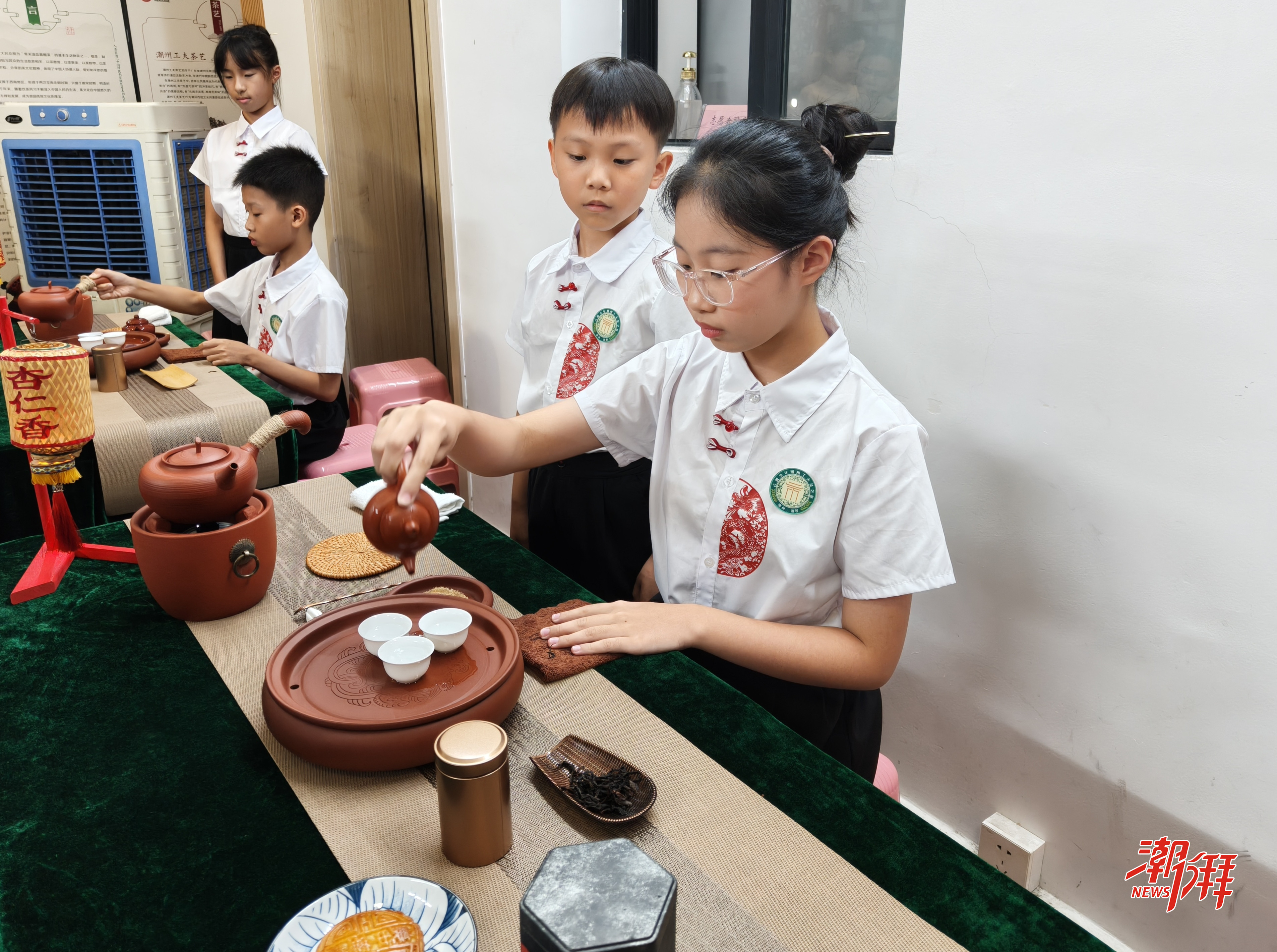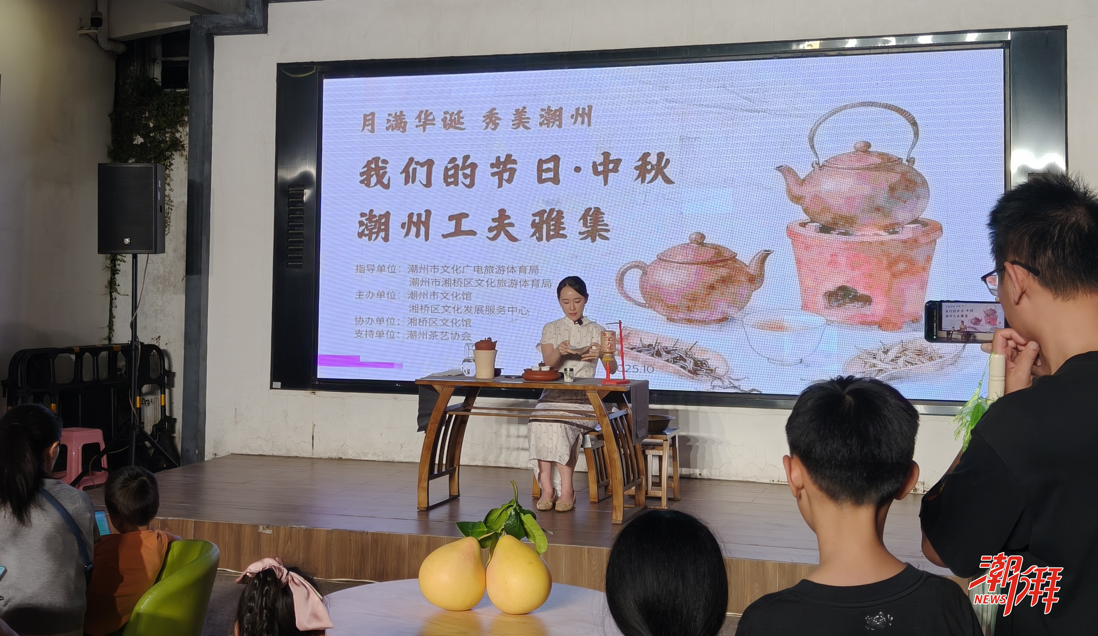 昨晚,湘橋區文化館內茶香裊裊,樂聲婉轉。由市文化館、湘橋區文化發展服務中心主辦的《我們的節日·中秋——潮州工夫茶會》在這里舉行。活動在工夫茶二十一式表演中拉開序幕,潮州工夫茶藝非遺代表性傳承人以優雅表演展示茶道之美。數名小茶藝師端坐席位間演繹沖泡技藝,稚嫩而專注的動作,引得觀眾駐足欣賞,伴著茶香共品茶韻。