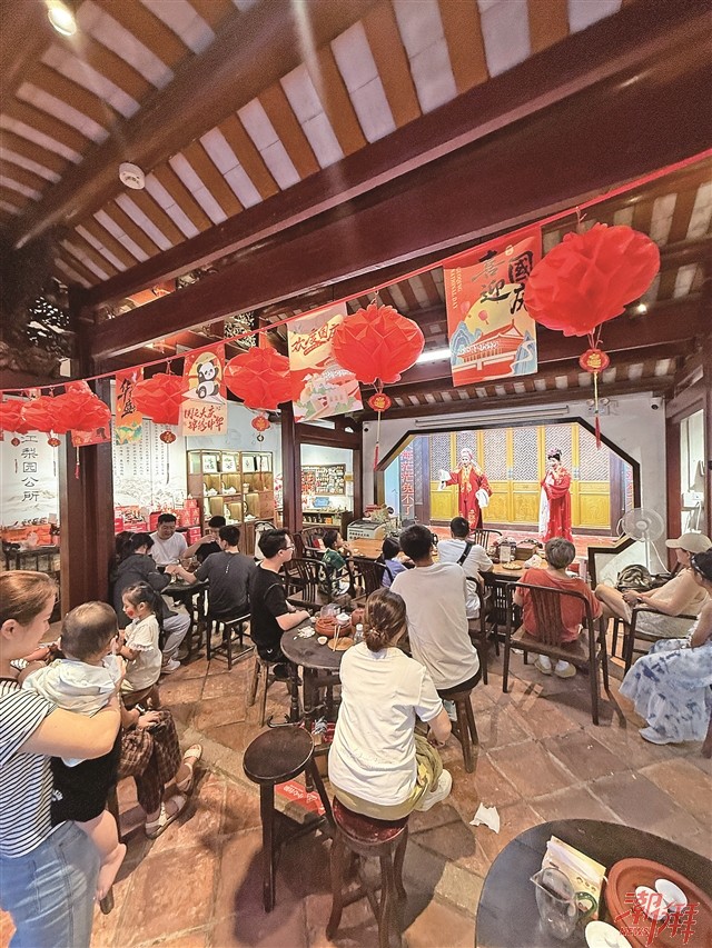 深入古城肌理,各類特色場(chǎng)館為游客提供了深度體驗(yàn)潮州文化的絕佳去處。長(zhǎng)假期間,牌坊街北段的“府城英歌舞體驗(yàn)館”內(nèi),喝彩聲與歡笑不絕于耳。這里打破了傳統(tǒng)的觀演模式,提供表演、體驗(yàn)、茶座一站式服務(wù),讓躍躍欲試的游客能夠親自上臺(tái)“耍槌槌”,在親身參與中感受國(guó)家級(jí)非遺的獨(dú)特魅力。與此同時(shí),外江梨園公所里,經(jīng)典的潮劇唱段悠揚(yáng)回蕩,配合著工夫茶的氤氳香氣與非遺展覽的靜默訴說(shuō),共同營(yíng)造出一方靜謐而豐盈的文化天地。鳳凰洲公園則以常態(tài)化的非遺展演,將綠地公園變?yōu)殚_(kāi)放的民俗舞臺(tái),吸引了大量市民游客駐足。數(shù)據(jù)顯示,這些活動(dòng)均取得了顯著成效,其中鳳凰洲公園帶動(dòng)園區(qū)消費(fèi)達(dá)9.5萬(wàn)元,梨園公所實(shí)現(xiàn)營(yíng)收1.23萬(wàn)元。
