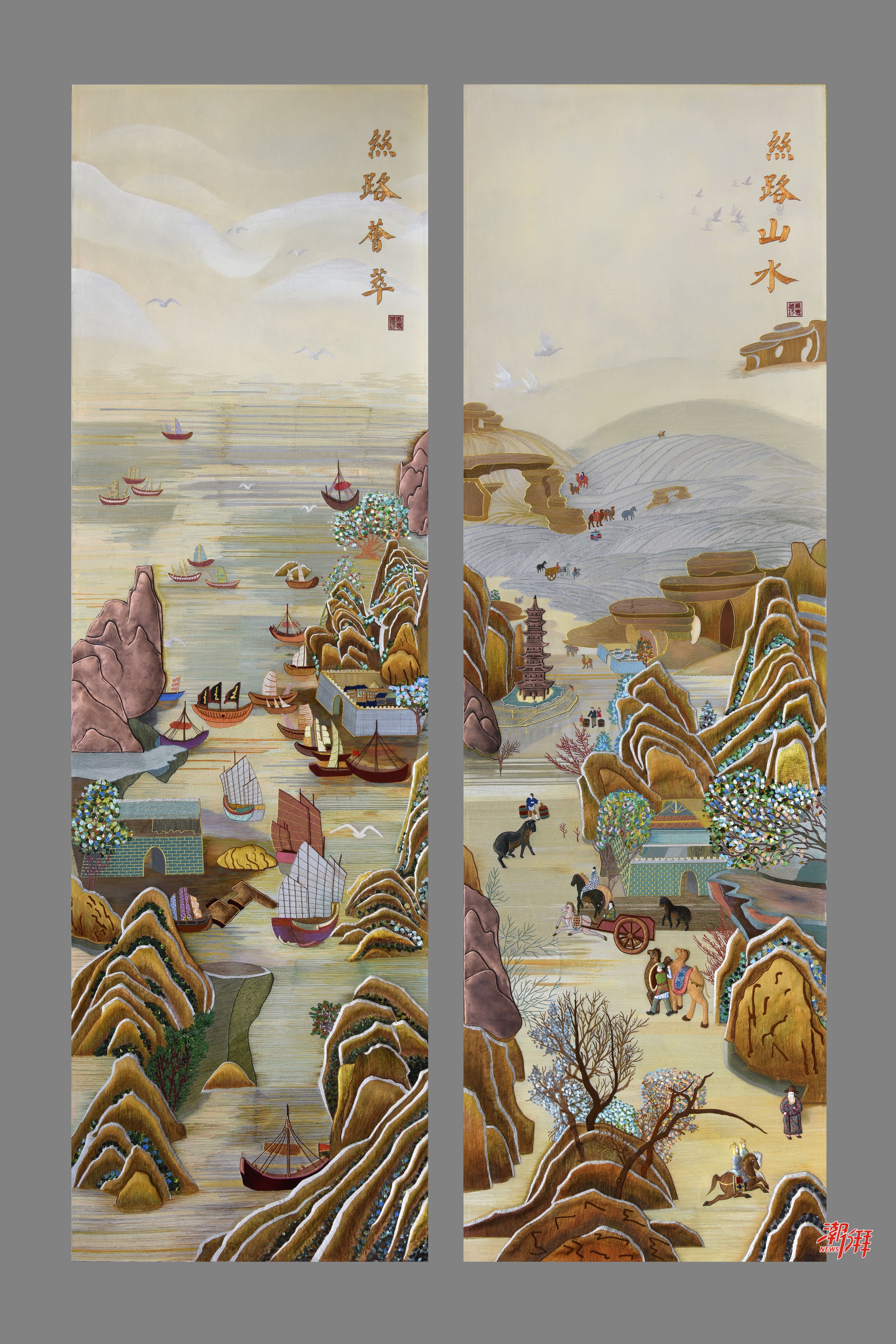 這些年,康惠芳帶著潮繡不斷“走出去”,讓世界看到中國非遺的魅力。2022年底,她完成3米多長的潮繡作品《一橋一樓一街》,將廣濟橋、廣濟樓、牌坊街等潮州文物古跡繡入其中,還融入潮州木雕、潮州工夫茶等文化元素,她表示:“希望通過這幅作品,為大家展示潮州豐富的傳統文化,讓更多人讀懂潮州。”2023年4月7日,中法兩國元首廣州非正式會晤現場,她的潮繡作品《歲朝清供》引人矚目。這幅金絨墊繡博古屏風不僅榮獲中國民間文藝最高獎“山花獎”,還摘得2012年第八屆中國工藝美術“百花獎”金獎,堪稱潮繡傳統技藝的集大成者。去年,她首次嘗試現代幾何題材,繡制了一幅剛勁與柔美、當代與傳統相融的4米高作品,備受青睞,她的繡品《孔雀》也將于近期赴沙特阿拉伯參展。