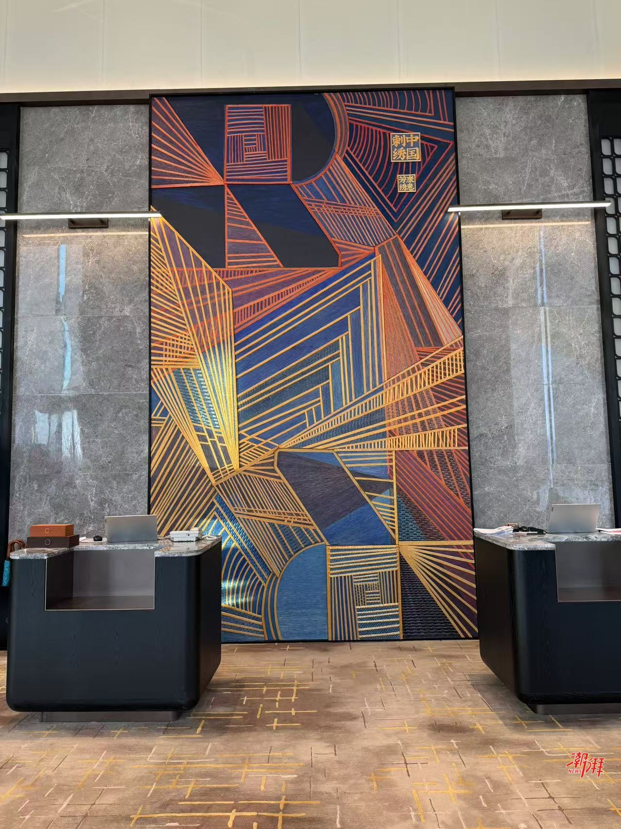 康惠芳首次嘗試現代幾何題材,繡制了一幅剛勁與柔美、當代與傳統相融的4米高作品。
