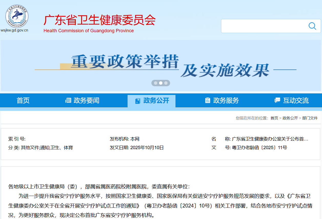 公布首批廣東省安寧療護(hù)服務(wù)機(jī)構(gòu)名單