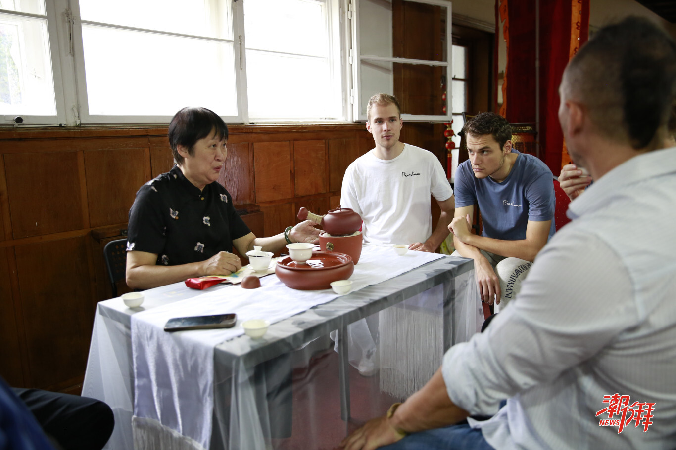 活動現場,潮州非遺展示區同樣吸引眾多禪武聯盟成員駐足體驗。潮州高級茶藝師石瑞燕老師端坐在紅泥火爐旁,嫻熟地沖泡鳳凰單叢茶,還細致講解潮州工夫茶二十一式。火爐中炭火微微泛紅,朱泥壺飄出的縷縷茶香,與現場的鼓點、笑聲交織,營造出愜意溫馨的氛圍。其間,石瑞燕與李康迪還向在場成員介紹潮繡、潮州木雕、潮州手拉朱泥壺等非遺項目,通過豐富的文化體驗,讓國際友人沉浸式感受潮州文化的獨特魅力。