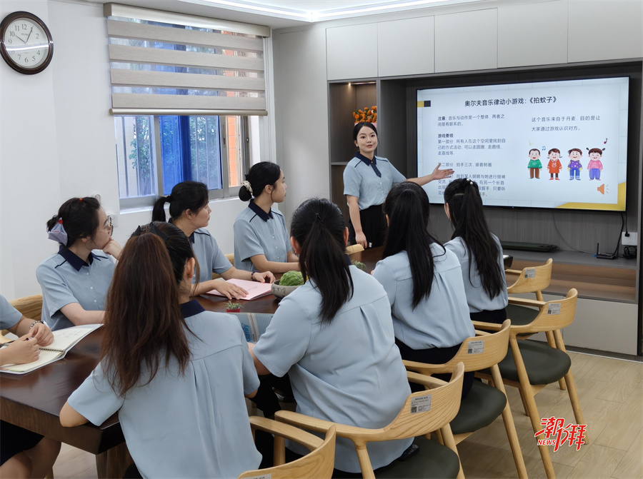 歐婷是全園唯一的音樂專業教師,她承擔著教師教研培訓的任務。每學年的音樂教研課上,歐婷會把在高校學到的專業知識,轉化成適合幼兒園教學的方法,和同事們一起打磨幼兒課程,提升教學水平。