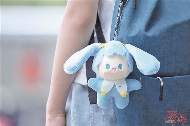 在三麗鷗包掛專區(qū),大學(xué)生小呂和姐姐正在挑選與自己有“眼緣”的HelloKitty包掛。“這個秋日款很符合我現(xiàn)在的心情。”小呂一邊說,一邊將包掛放在背包上比劃。