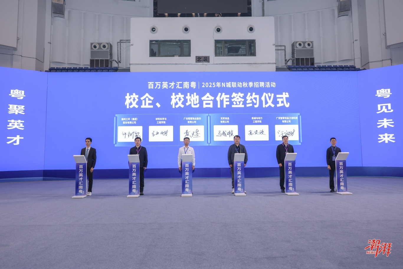 現(xiàn)代化產(chǎn)業(yè)園區(qū)充滿蓬勃活力、古城街巷充滿人文韻味——開場(chǎng)儀式上,惠州、潮州城市宣傳片輪流播放,生動(dòng)展現(xiàn)兩座城市的產(chǎn)業(yè)活力與人文魅力。廣東宣傳片《到廣東,夠廣東》精彩亮相,全方位呈現(xiàn)廣東的發(fā)展機(jī)遇與城市吸引力,進(jìn)一步拉近學(xué)子與廣東的距離。隨后,校企、校地在現(xiàn)場(chǎng)簽訂合作協(xié)議,圍繞項(xiàng)目技術(shù)攻關(guān)、人才培養(yǎng)輸送等領(lǐng)域開展務(wù)實(shí)合作,為后續(xù)人才培養(yǎng)與就業(yè)合作奠定基礎(chǔ)。