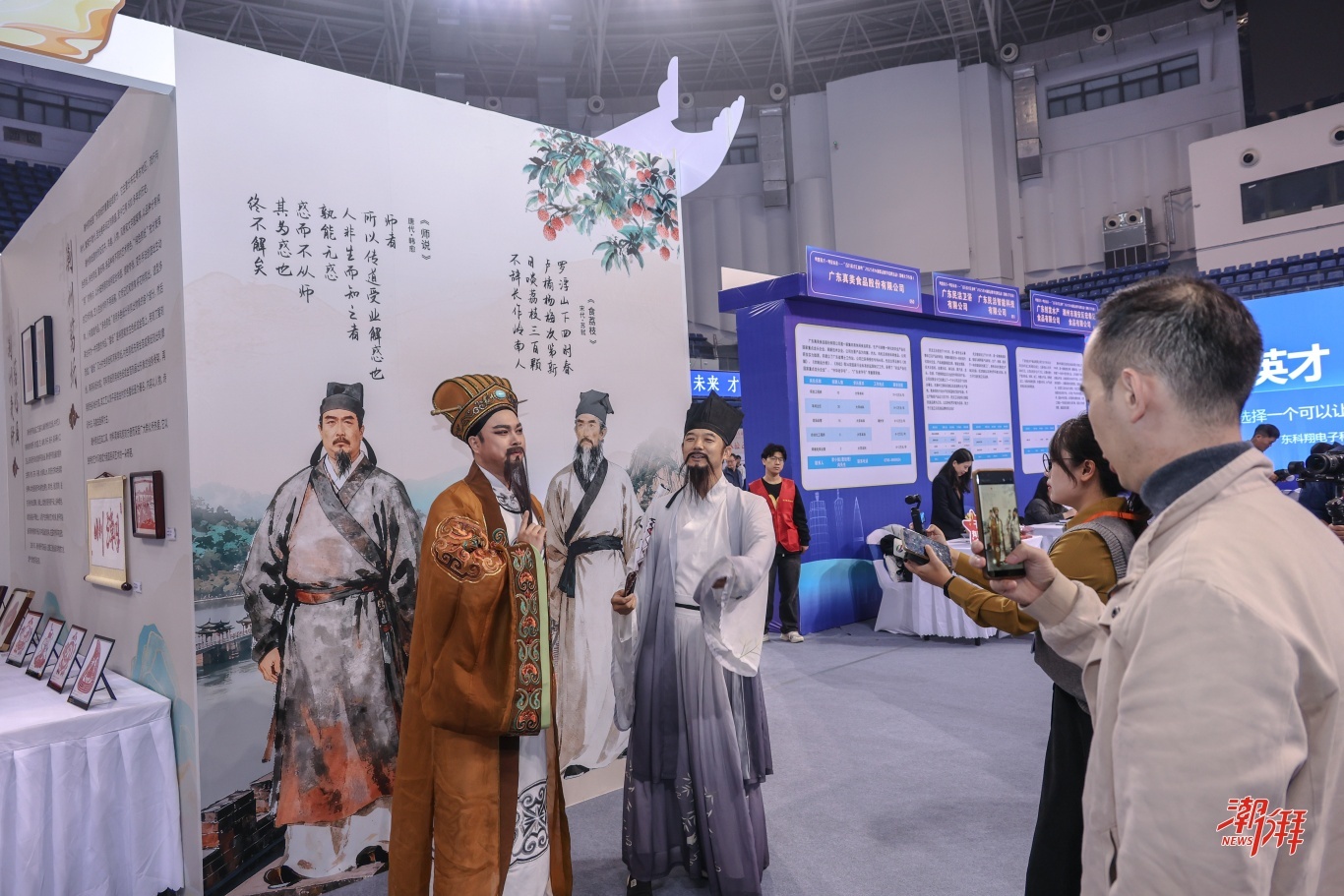 “這位學(xué)子,可愿來(lái)廣東發(fā)展?”蘇軾、韓愈兩位與惠州、潮州歷史淵源深厚的文豪IP角色驚喜現(xiàn)身,化身“特邀HR”來(lái)到學(xué)子中間,結(jié)合歷史文化與城市發(fā)展,為求職者量身推薦心儀崗位,這種“古今對(duì)話”的引才方式既新穎又親切,讓大家眼前一亮。