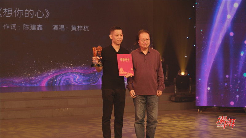 最終,陳建鑫作詞作曲的《想你的心》憑借真摯質樸的情感、動人的旋律,斬獲金獎及最佳作詞獎、最佳作曲獎。歌曲唱出了潮州人對家鄉與親人的深沉牽掛,以共同的情感共鳴跨越地域界限,成為潮語音樂打動人心的典范。王文森為金獎獲得者頒獎。