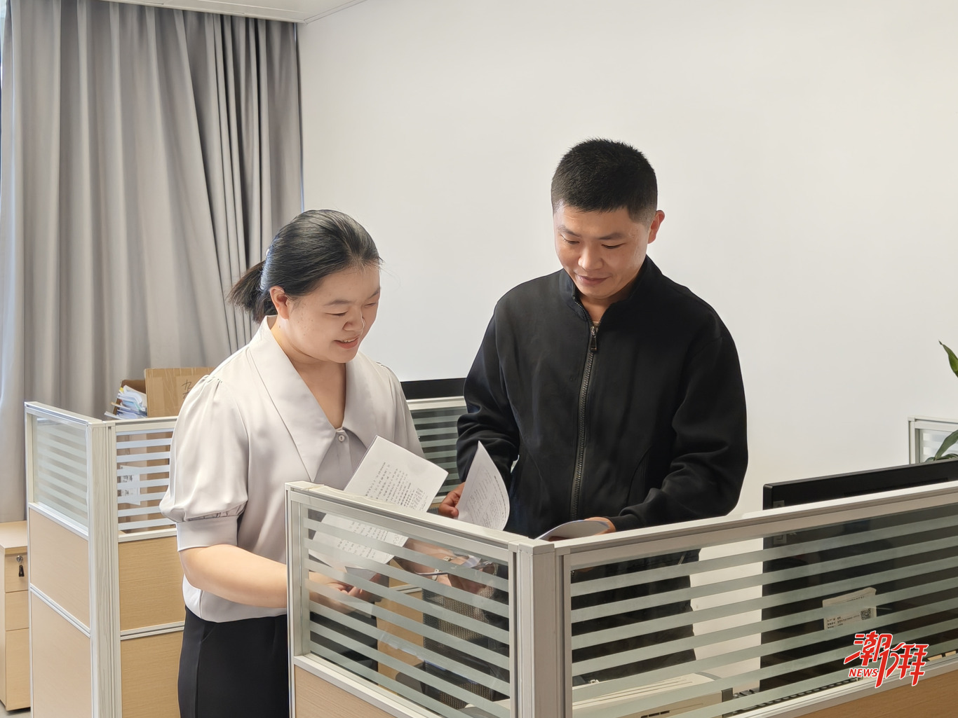 熊佳皓(左)和同事進行業務交流。