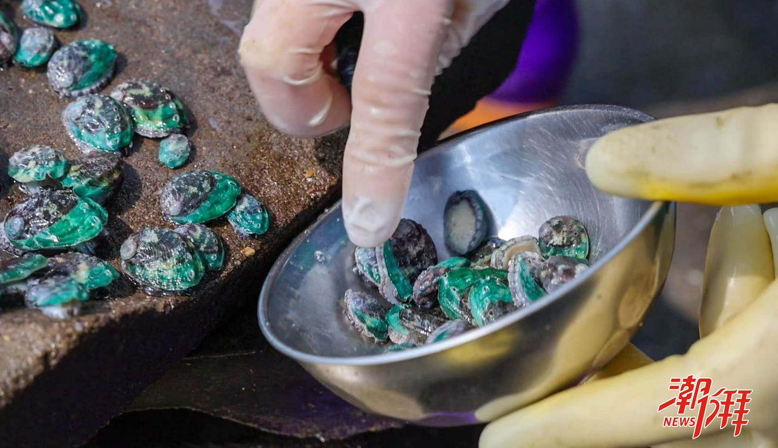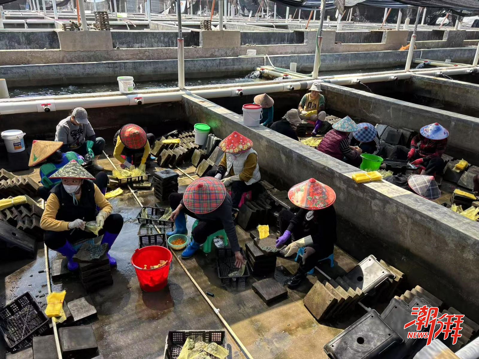 今年以來,大埕灣海域的養殖場景迎來新變化——新增格筏架式海上鮑魚養殖網箱,為產業發展注入新活力。“我們公司2025年2月初投放鮑苗,所用筏架式網箱每格5米×5米,總占地面積32畝。”饒平縣綠鮑水產養殖有限公司負責人陳森輝介紹,每格網袋投放鮑苗600至700粒,養殖過程以海帶為飼料,新模式下的養殖效率顯著提升。