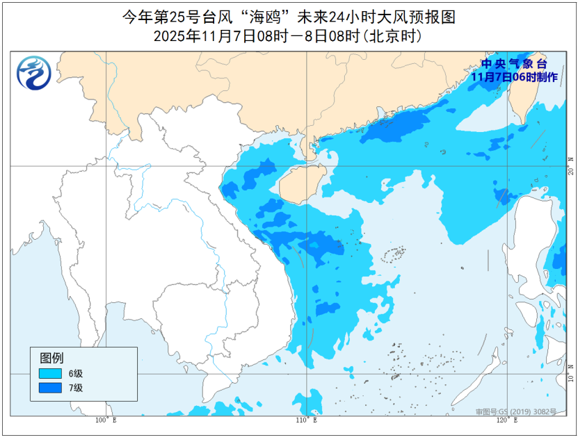 中央氣象臺今早已解除臺風(fēng)黃色預(yù)警。但受“海鷗”殘余環(huán)流和南下冷空氣的共同影響,7日8時(shí)至8日8時(shí),臺灣海峽、巴士海峽、南海北部和西部及東沙群島、西沙群島、南沙群島西部、瓊州海峽、北部灣將有5到7級風(fēng)、陣風(fēng)8級。