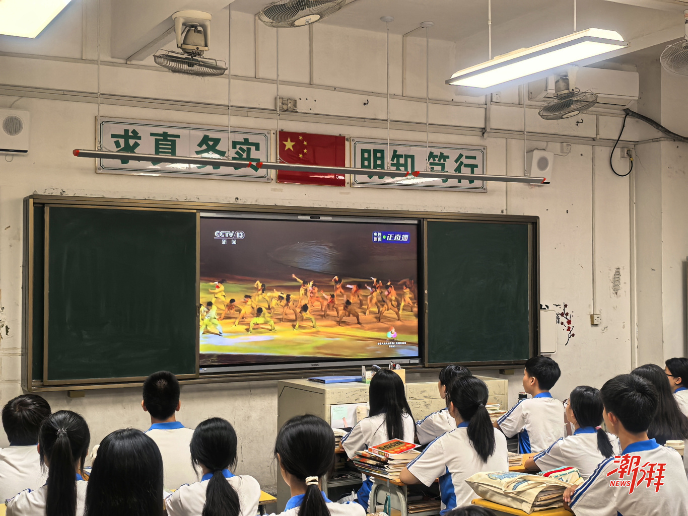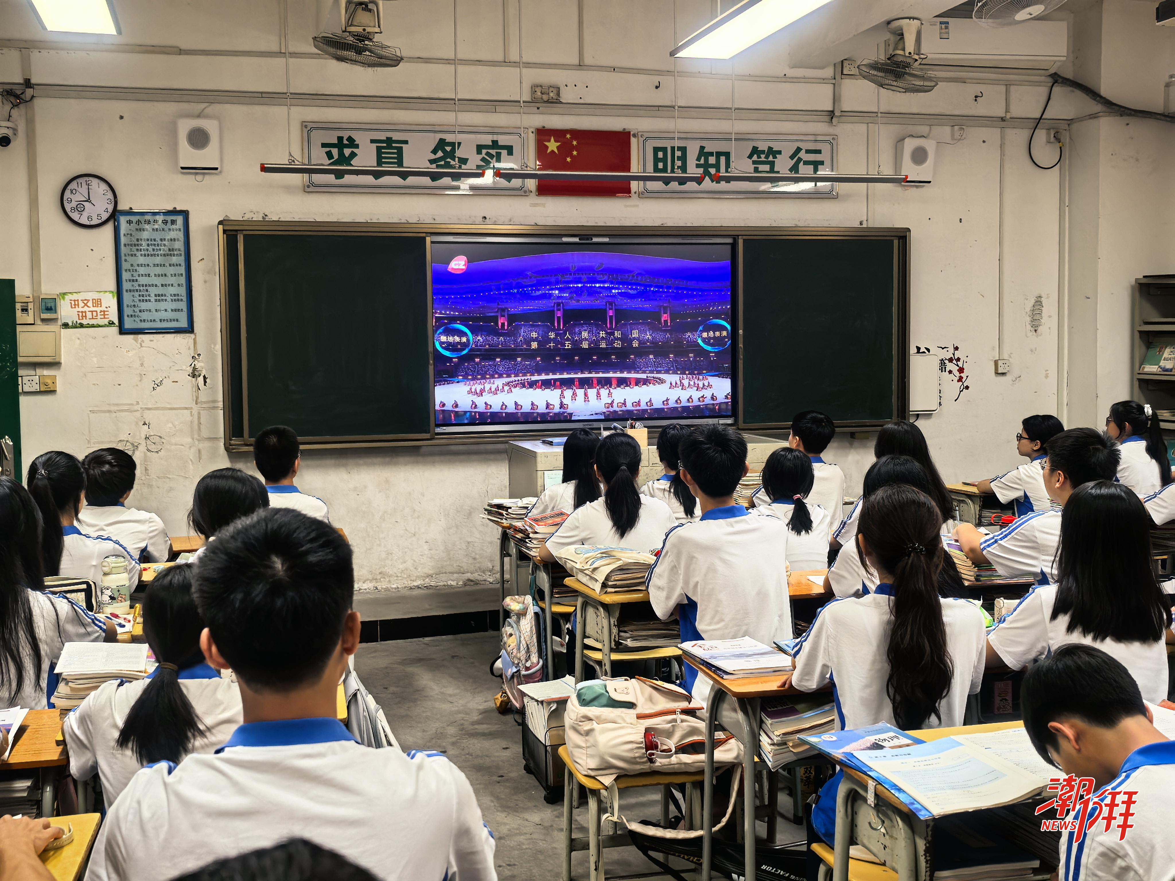 湘橋區意溪中學的師生們通過集中觀看開幕式,沉浸式感受著體育競技的熱血與拼搏。謝錫賢 攝