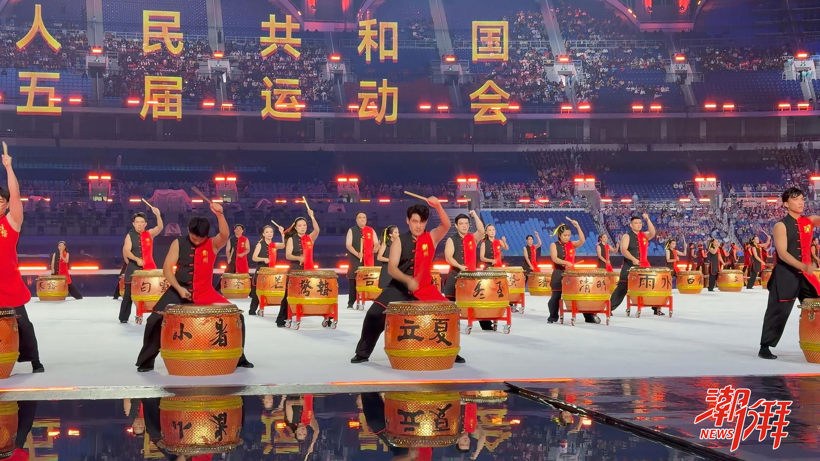 11月9日,第十五屆全國運動會在廣東奧林匹克體育中心開幕。暖場表演環節中,潮州二十四節令鼓《鼓誦二十四》率先登場,讓“潮州聲音”響徹全國舞臺。市潮響鼓社社長李康迪帶領150名鼓手,用傳統鼓點對話現代編排,在側鼓、平鼓、上鼓的多樣技法切換中,將農耕文明的底蘊與“潮涌灣區”的活力相融,勾勒出傳統與現代交融、體育與藝術共生的繁榮圖景。