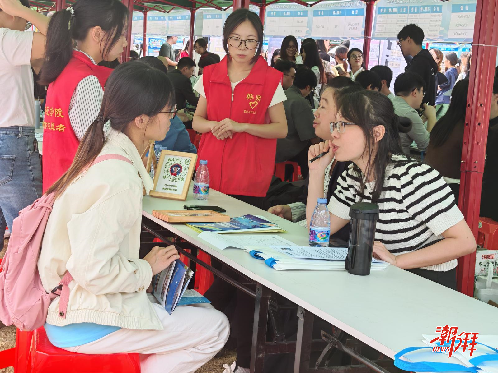 求職者與企業招聘人員深入溝通。(潮州日報全媒體記者 翁燁凰 攝)