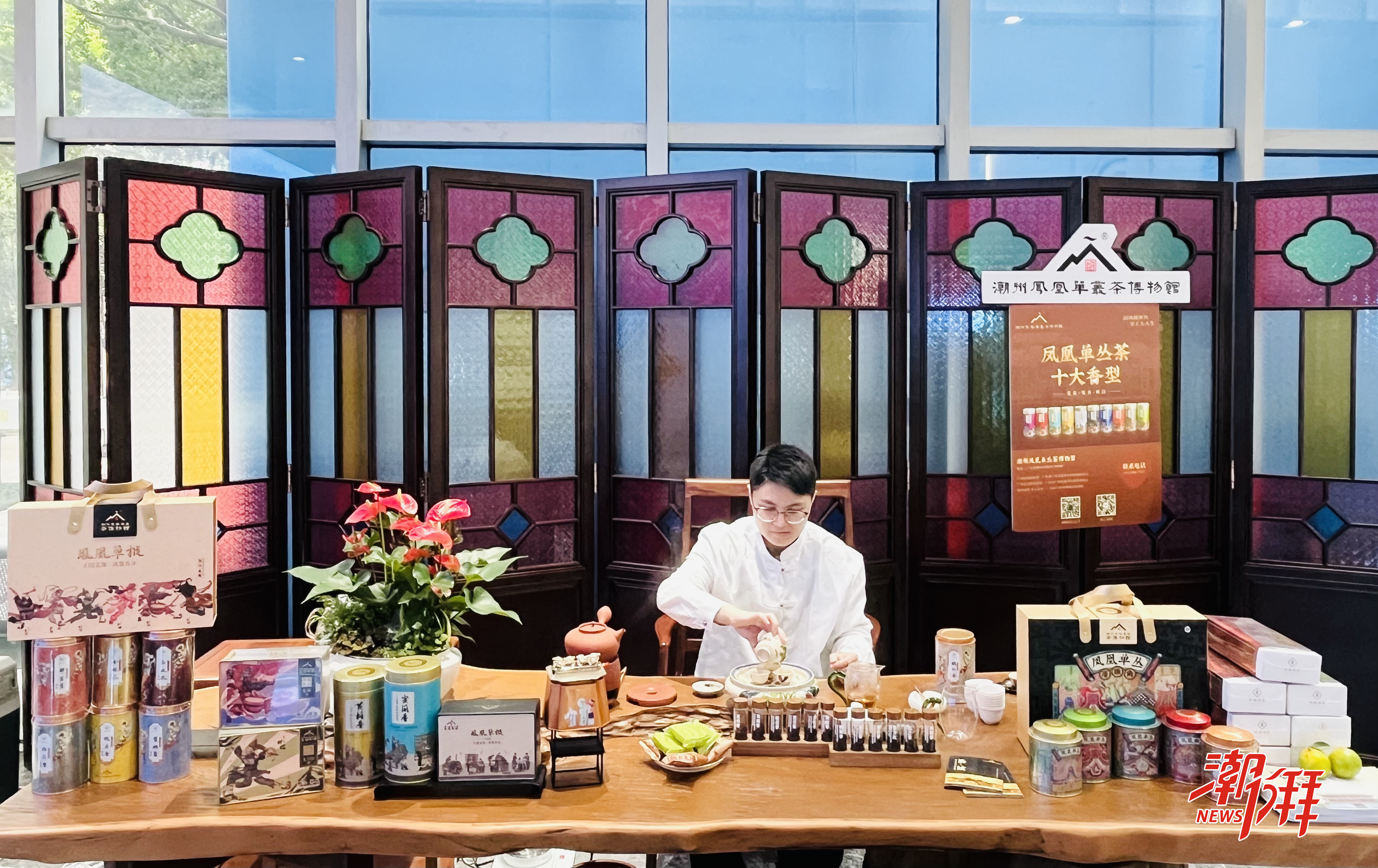 另一邊,茶香氤氳中,潮州鳳凰單叢茶博物館的茶藝師正展演“潮州工夫茶藝二十一式”。茶藝師身著傳統服飾,手法行云流水,從溫杯、置茶、沖點、刮沫、淋蓋、分杯等動作一氣呵成,盡顯工夫茶的雅致韻味。蒸騰的茶香彌漫開來,嘉賓圍坐一旁,細細品味鳳凰單叢茶的十大香型,時而低聲交流口感心得,時而向茶藝師請教沖泡技巧,感受潮州工夫茶的深厚底蘊。