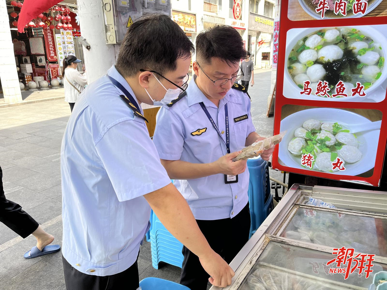 執(zhí)法人員檢查牛肉丸產(chǎn)品質(zhì)量。 市市場監(jiān)管局 供